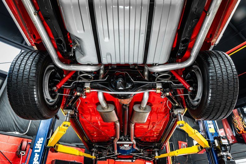 The interior of this Torino is gorgeous and in great condition! Take a look inside to see this Torino sporting Front Bucket Seating, Rear Bench Seating, Front and Rear Seat Belts, Black Vinyl Upholstery, Black Carpeting, Stock 2-Spoke Steering Wheel, Center Console, Hurst Shifter, Factory Style Gauges, Factory Style Audio System, along with a Spare Tire that's located in the wonderfully refinished trunk. The undercarriage of this Torino also looks great! Take a look underneath to see the nice condition of the Body Color Matched Painted Floorboards, New Fuel Tank and the New Exhaust System with Flowmaster Mufflers!
