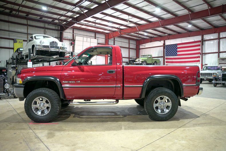Pay attention to this truck as you do not find them in this condition very often. GR Auto Gallery is excited to bring to market this brawny 1997 Dodge Ram 1500 Laramie SLT 4X4 short box pick up. This truck was held by the second owner from 2001 to March 2025. It is finished in its Firecracker Red metallic exterior paint over a ultra clean grey custom cloth interior. Power comes from its 5.2 liter Magnum V8 engine, 5 speed manual transmission and 4 wheel drive. Highlights include: power steering, power brakes, power windows, power locks, factory stereo with cassette, 3 way split bench with folding center, sliding rear window, tilt wheel, cruise control, cold air conditioning, suspension lift, custom aluminum wheels, side steps, short box, spay in bed liner, chrome step rear bumper, etc.