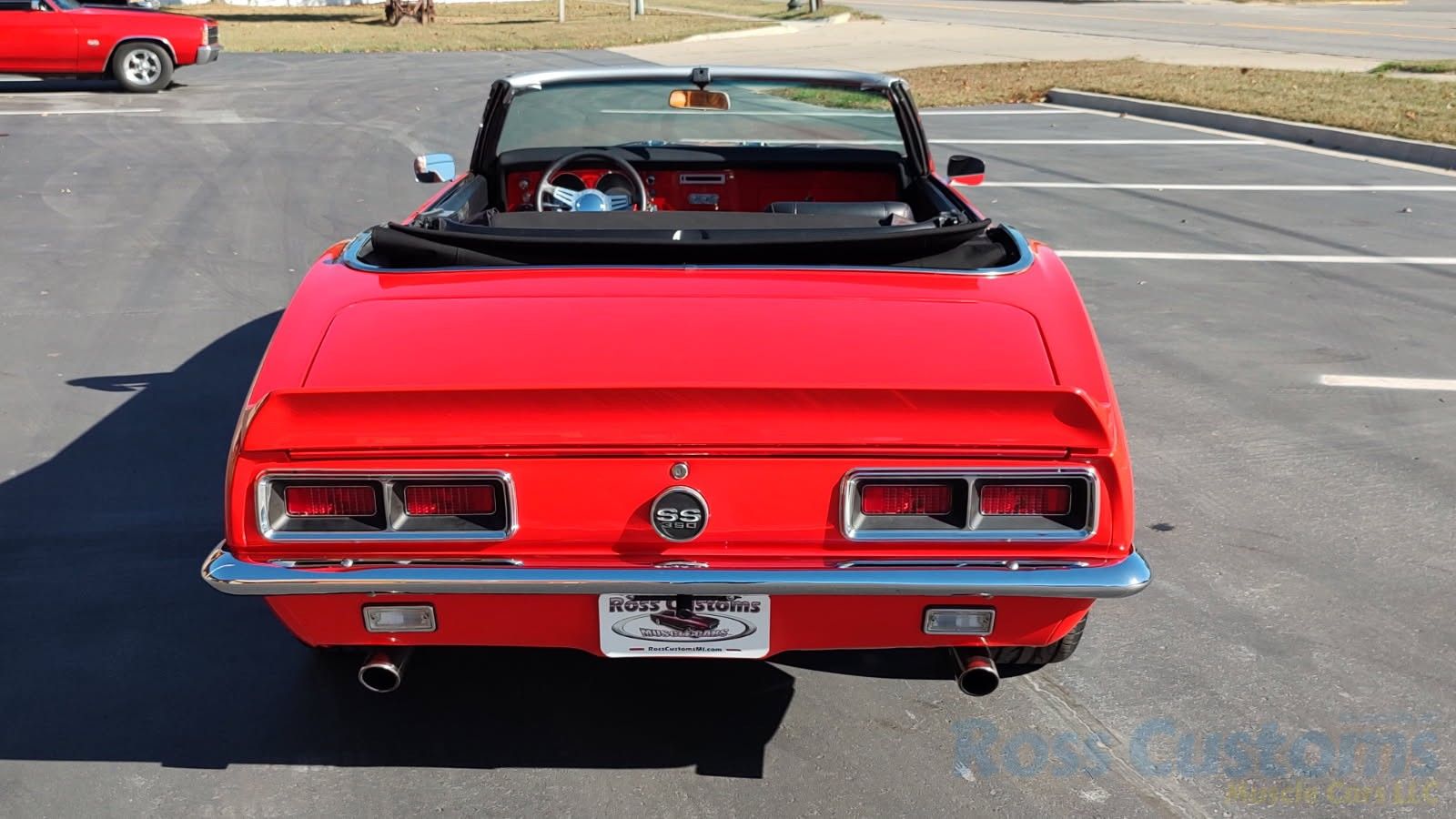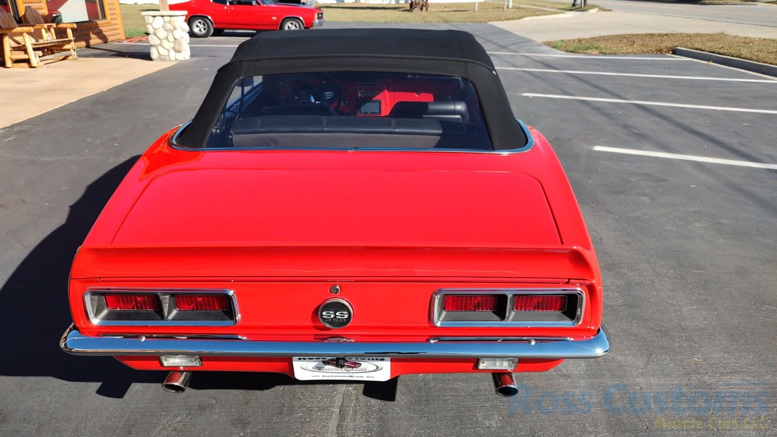 This is a "BAD ASS" 68 Camaro RS/SS Convertible that has had a complete custom build, done in "Show Quality" Torch Red with black bumblebee strip, basecoat clearcoat, sanded and wheeled smooth, slick as glass, new canvas convertible top and new window; which is power, new tinted glass throughout, window stainless and top stainless moldings are original in excellent condition, new weather stripping and window felts, new side view mirrors and door handles, wiper arms look like new, new SS ice cube hood inserts, new grill, headlight doors and grill moldings, updated with Detroit Speed electric headlight doors, re-chromed front bumper, new chin spoiler, new emblems, new side marker bezels, rear deck spoiler, new taillight housings and lens, new backup lights, new SS fuel cap, re-chromed rear bumper.