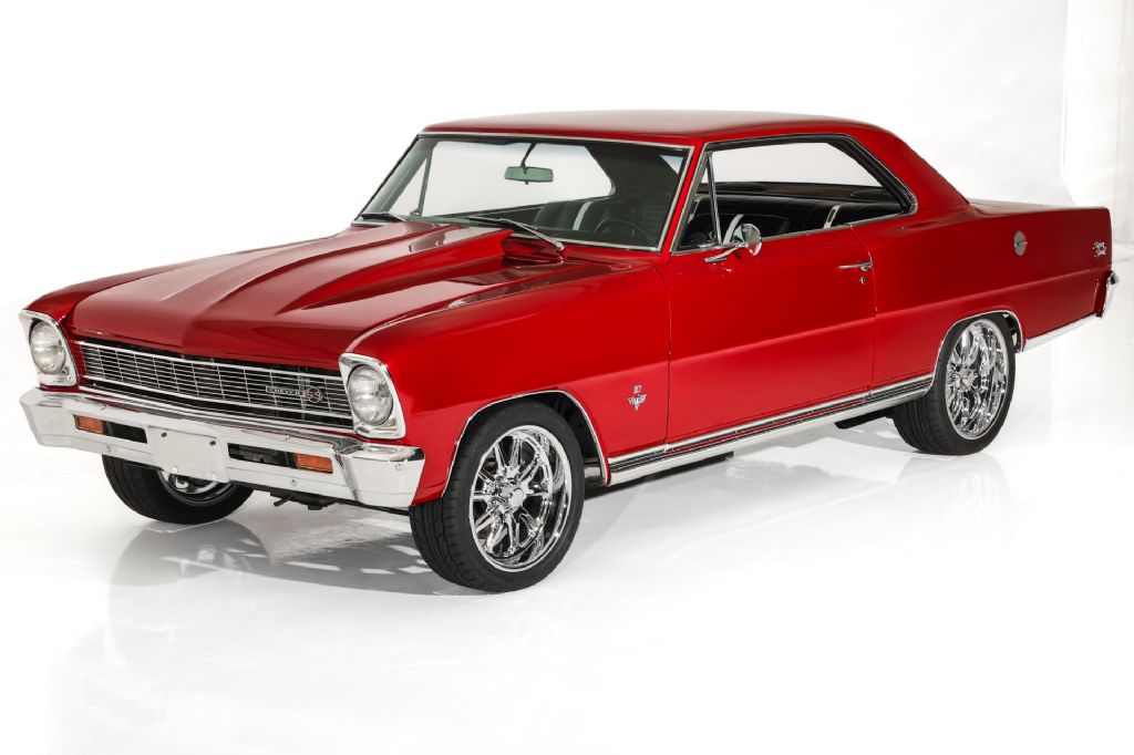Beautiful Brandywine, Chevy II Nova Super Sport with black bucket seat interior with white sport stripe. This a true Super Sport with the correct vin designation of 117 that authenticates this muscle cars SS status. Show quality engine compartment showcasing a performance built Corvette LT1 engine with serpentine belt system. Nicely optioned with Wilwood 4-wheel disc brakes, newer vintage AC, rack and pinion steering, accented with chrome and billet and a polished aluminum radiator to keep things cool. The 700R4 4-speed automatic transmission with overdrive is a pleasure to drive and transfers the power to a 12-bolt, posi-traction, Moser rear end with a freeway friendly 3.31 gear. The striking custom Brandywine paint has a great shine and the chrome and stainless is all in very good condition. This 1966 American Dream Machine is rolling on new US Mags Rambler chrome wheels and new performance radials that are ready to put the rubber to the road.