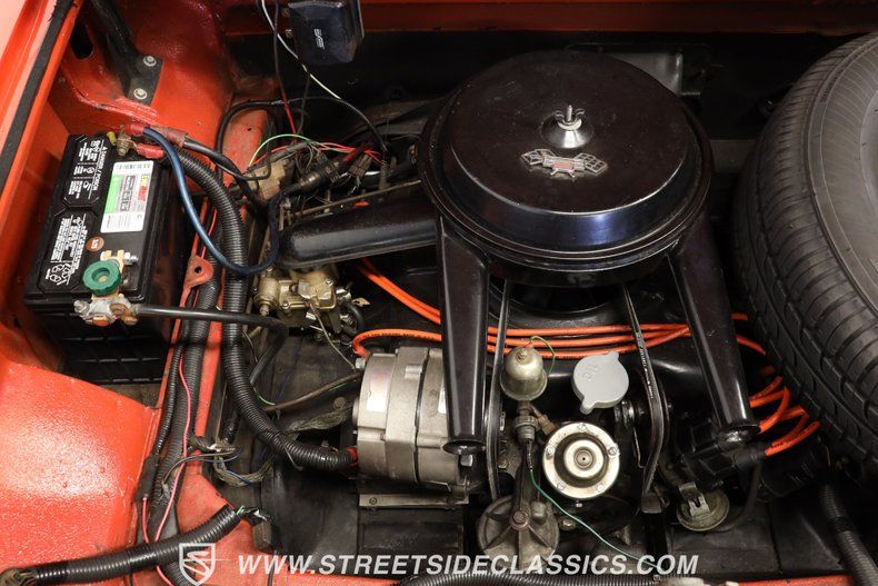Step inside to discover an interior that beautifully balances vintage charm with comfort. The white vinyl seats are in very nice shape, offering a soft, inviting touch that complements the red-painted dashboard. Gauges are clear and legible, while the black carpet and matching vinyl door panels maintain a cohesive and stylish look. An aftermarket Pioneer radio discreetly hidden in the glove box, paired with an upgraded speaker under the dash, adds a modern convenience without compromising the classic feel.
