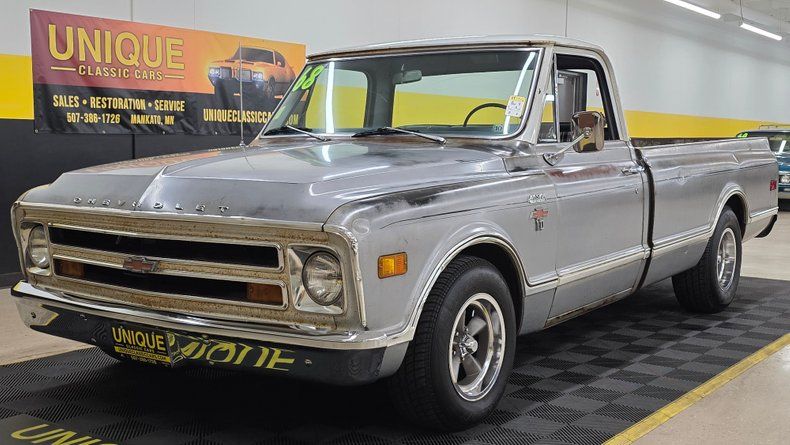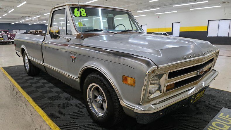 Classic 1968 Chevrolet C10 with original weathered silver and white patina finish