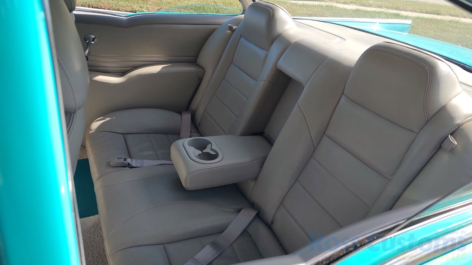 Custom light mocha interior, dash and all garnish moldings have been refinished, updated wiring throughout, new gauges showing 2500 miles, billet dash trim, updated with IDIDIT tilt steering column with billet steering wheel, at time of build had new headliner and package shelf, custom front and rear door panels, nicely outfitted with late model seating, rear seat has fold down armrest with cup holders, front buckets are both power, updated with front and rear seat belts, custom center console nicely outfitted with LoKar shifter that works correctly with the 700R4 overdrive trans and has cup holds, new carpet, Bel Air floor mats.