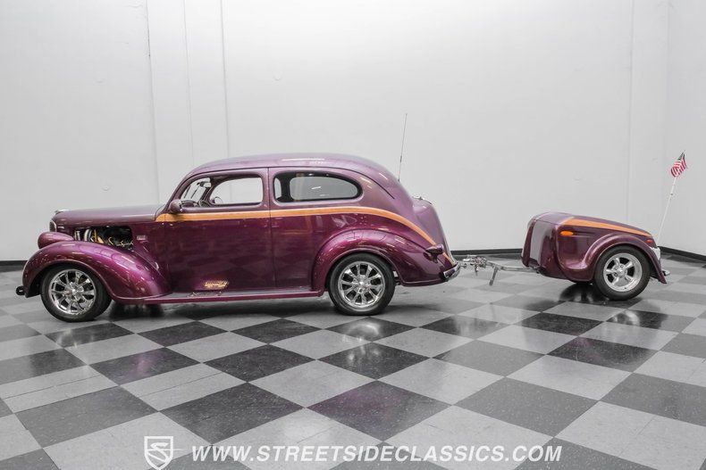 Step back in time and experience the allure of a bygone era with a modern twist in this stunning 1938 Dodge Sedan Restomod. This vehicle is more than just a car; it's a rolling testament to craftsmanship, passion, and automotive history. The classic lines and vintage charm invite memories of open roads and simpler times, while the restomod enhancements bring a fresh, exhilarating edge to your driving experience. Paired with a matching trailer, this 1938 Dodge Sedan makes a bold statement at any car show or cruise night, combining nostalgia with contemporary performance and comfort.
