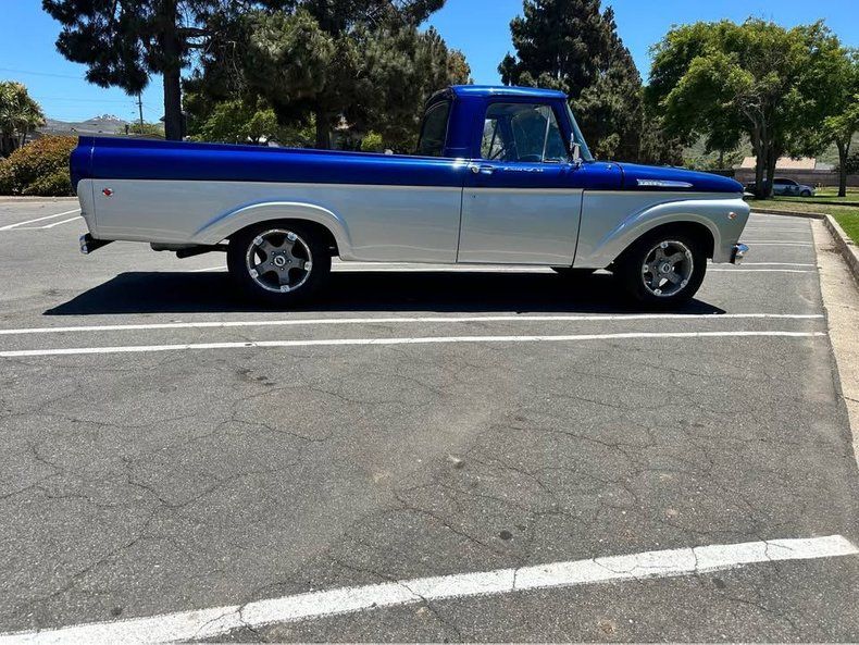 This 1962 Ford F-100 Unibody pickup has undergone an extensive restoration, making it a beautiful example of Ford's rare unibody design. The truck features a refreshed 292 V8 engine paired with a manual transmission, both performing perfectly. It has received new paint in an attractive silver and blue combination, along with new wheels, tires, brakes, and a fully redone interior in gray. The fuel tank has been relocated to the back for improved functionality. Overall, this F-100 runs and drives great, showing off both its vintage charm and dependable performance.