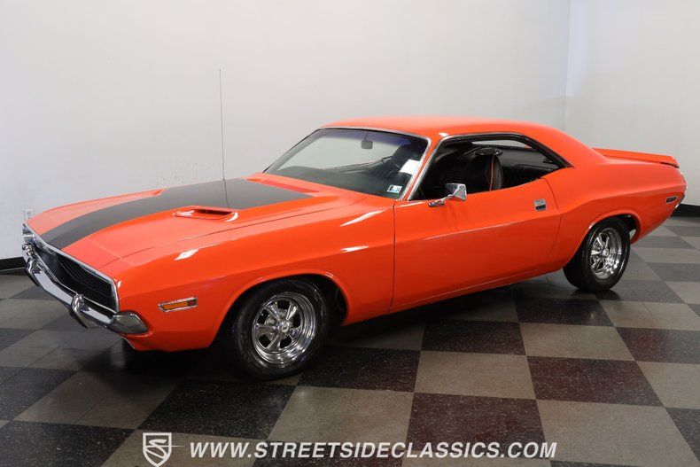 It's one of the most iconic muscle cars ever to light up the asphalt, draped in period-correct Vitamin C Orange paint and powered by an expansive V8 that has been the envy of fellow enthusiasts for decades. This 1970 Dodge Challenger 440 is an outstanding representative of its model, and it arrives at the present in great shape. Its nostalgia-inducing paint has a nice shine and, if you take a closer look, you'll see that the broad stripe ornamenting its hood is no mere decal. It's painted on, a feature reserved only for 1970 Challengers rolling off the assembly line outfitted with the coveted Bumblebee appearance package. Add in clean chrome bumpers at both ends, along with a collection of body trim that really shows nicely, and you have one fine-looking Mopar classic.