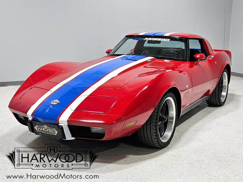 Given the long list of upgrades on this 1978 Chevrolet Corvette, you could be forgiven for thinking it should cost much more than it does. The engine alone was probably a significant portion of the asking price, making this a screaming bargain from any angle. The brilliant Torch Red paint is highlighted by red and blue stripes down the center, giving the car a race-ready look thats more than just posing-this one has the horsepower to back it up. Finish quality is good all around, not perfect, but more than acceptable for the local cruise nights. With a ducktail spoiler, it looks leaner and meaner than your average 1978 Corvette and it has an ideal stance that looks predatory. The stripes are nicely applied, wrapping around the front bumperettes and stretching over the T-top roof panels and onto the rear deck, and the way they extend into the roof gutters suggest someone took their time with the job. It has a great look that presents really well.