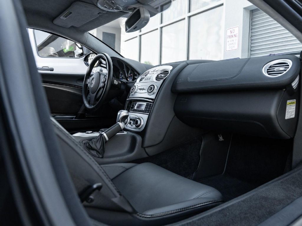 With only 334 miles!, this 2006 Mercedes-Benz SLR McLaren in black over black interior is a near new, handbuilt super grand tourer that pairs old school analog presence with modern exotic performance: a front mid, supercharged 5.4-liter V8 AMG producing 617 hp and 575 lb-ft of torque, mated to the AMG SPEEDSHIFT 5 speed automatic with manual shift paddles and sending power to the rear wheels; that hardware launches the SLR to 60 mph in just 3.4 and on to a governed top speed in the 210+ mph neighborhood while tipping the scales at roughly 3,700 lbs. Built with extensive carbon fiber structure, signature butterfly doors, Brembo braking and bespoke AMG detailing, the SLR is a limited, highly collectible collaboration between Mercedes and McLaren (total SLR production: 2,157), making this ultra low mile example especially desirable for collectors who want supercar performance with grand tour comfort and striking provenance.
