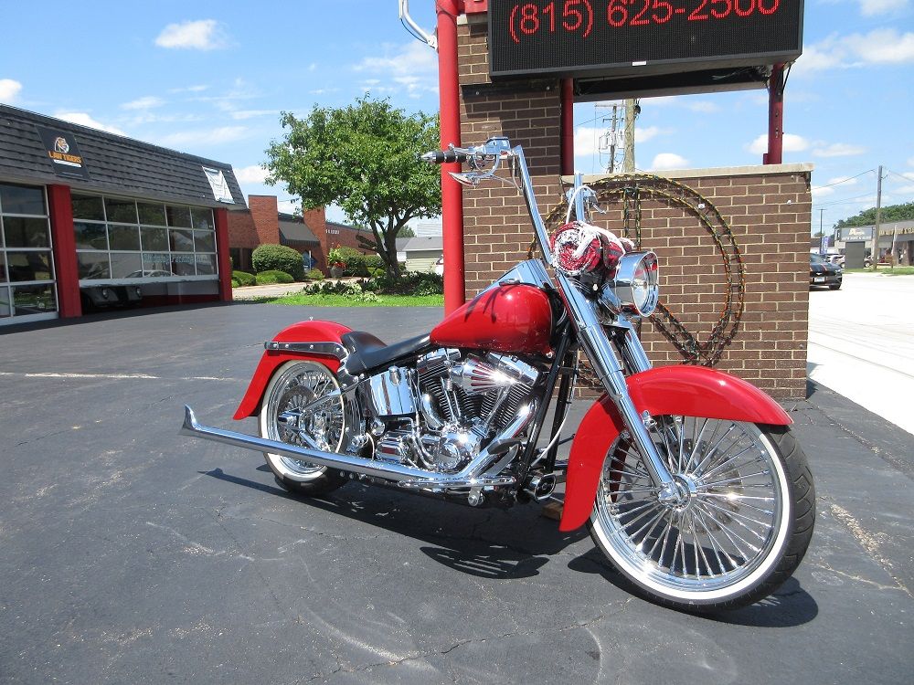 Designed to offer touring accommodations with early dresser styling the Heritage Softail Classic is equipped with a smooth riding black and chrome Twin Cam 88B engine. This particular example underwent a complete transformation to make it the sweet Cholo Softail that you see here. It was lowered front and rear and fit with a sweet set of fat spoke rims with a 21 up-front and an 18 on the rear both wrapped in whitewall tires. During the transformation there was an incredibly long list of chrome parts installed which include the chrome swing arm, 14” monkey bars, switch housings, switches, levers, billet dash, front end, axle covers, rotors, caliper covers, pulley, upper & lower belt guards, frame covers, primary cover, tranny cover, regulator cover, engine covers, tappet block covers, Arlen Ness mirrors, Arlen Ness floorboards, Pro 1 breathers, the performance air intake and it sounds just plain nasty ripping through its Samson 36” Fishtail exhaust. You will also appreciate that the rear blinkers are hidden in the fender struts, it has been upgraded with a Dynojet Power Commander V, it has Avon grips, a sweet La Pera solo seat as well as the iconic Mexican blanket roll strapped to the handlebars. Within the last 1,000 miles the bike was completely serviced which included a new battery, new gaskets, new tires, brakes, fresh fluids, new filters and a cam chain tensioner. All said and done well over $10,000 was spent transforming this bike into the sweet Cholo Softail you now see and that did not include the original cost of the bike. We are serious about finding it a new home and have priced it accordingly so if you like what you see we suggest that you reach out before it’s too late!
