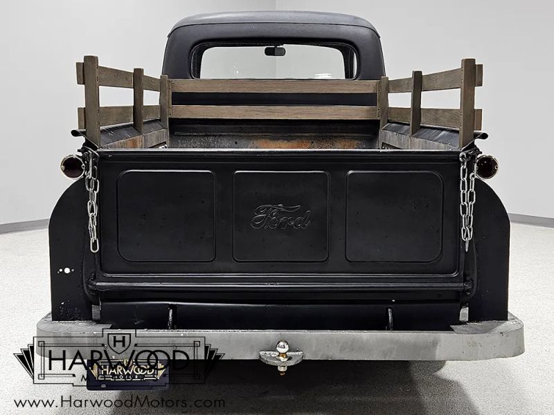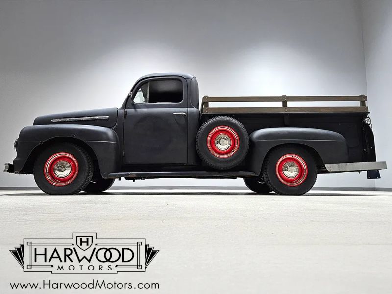 This low-key 1951 Ford F-2 pickup is one of our favorite vehicles. Why? Because it keeps the original, weathered look and enhances it with entirely new mechanical equipment under the skin. Looks old, drives new, thats just plain awesome. It apparently spent the entirety of its life on a fruit farm in California, so theres some surface scale underneath but no heavy rot or perforation, and the exterior sheetmetal is in excellent condition. Its obviously finished in black primer, and it has probably looked like this for decades, because theres plenty of age on the finish that the faux patina guys just cant match. Somewhere along the line it gained a heavy-duty rear step bumper and they decided to leave it intact when the truck got a makeover, along with the original planks in the bed and stake sides that are just about perfect. The brackets above the windshield are probably for a long-gone visor, and interestingly enough, this F-2 carries dual side-mounted spares, an unusual option. The chrome and stainless trim is in good order, not perfect but certainly appropriate, and all the lights and signals work properly. This truck is 100% ready to work or play.