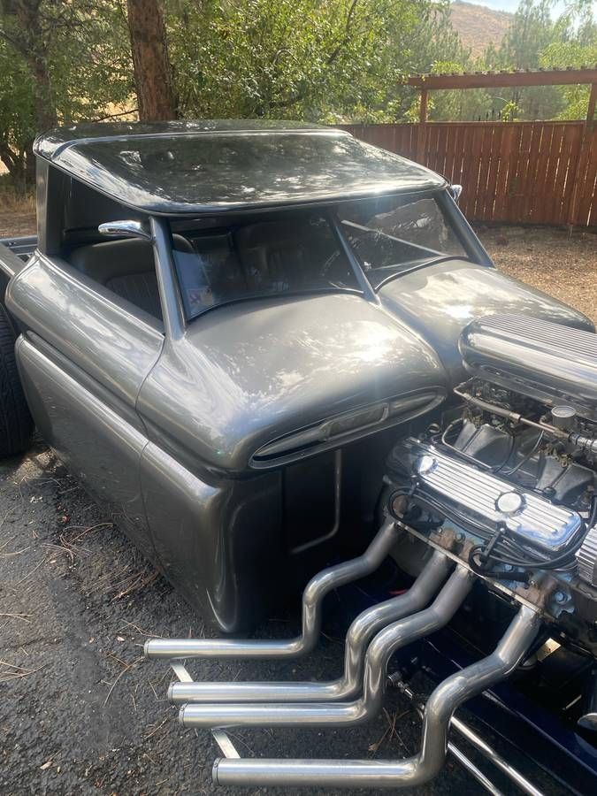 This 1962 Chevrolet Restomod Pickup is an extraordinary custom build that showcases exceptional craftsmanship and attention to detail. Finished in sleek gray paint over a matching gray interior, the truck presents beautifully and is in excellent condition throughout. The reversed cab design with suicide doors adds a unique and aggressive touch, while the air ride suspension provides a smooth and adjustable ride. Power comes from a high-performance 455 Buick engine with dual carbs, paired to a Turbo 400 automatic transmission and a narrowed posi rear for maximum traction. The undercarriage, stainless fuel tank, and polished components reflect the quality of the work invested-totaling over $125,000.