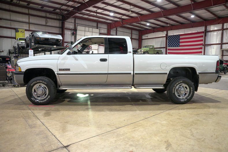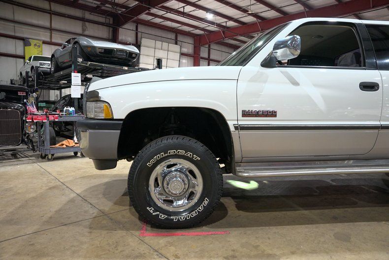 This Truck That Changed the Rules - Just harvested from the Pacific Northwest, GR Auto Gallery is pleased to offer this low mile, super clean 1997 Dodge Ram 2500 SLT 4X4 Cummins Turbo Diesel club cab pickup to the world market. The truck is powered by its Legendary 5.9 liter Cummins turbo diesel engine, Automatic transmission and 4 wheel drive. The truck is finished in its factory color combination of two tone Bright White with Driftwood Satin Metallic belt, over Gray custom cloth interior. Options include: Power steering, power brakes, power windows, power locks, power mirrors, A/C, 3 way split bench front seat with folding center console, rear bench seat, cruise control, overhead console, aluminum wheels, tow package, Factory AM/FM with Cassette, auxiliary power point, tilt steering wheel, 8 foot bed, stainless steel running boards, etc.