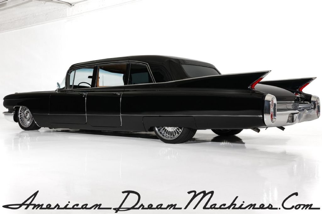 Extravagant Black 1960 Cadillac Rock Star Custom Limousine with the best fins Harley Earl ever made. An extensive, over the top, restoration was performed on this elegant black 1960 Cadillac Fleetwood Series 75 Limousine with tinted divider window for privacy. This rare, low mileage Limo has had an extravagant amount of money spent to make it the beautiful cruiser it is today. One of the key features includes lush custom Napa AutoMod tan leather interior front and back with creature comfort upgrades. The interior was re-designed with no expense spared, AutoMod custom leather interior, custom mini bar and with built in expensive three amp sound system with bluetooth, sound studio speakers and subs in the trunk that will blow you out of the car and loaded with upgrades like air conditioning, Air Lift Performance, air ride suspension lets you choose to show off the very expensive, custom 20 inch turbine styled Cadillac chrome wheels or air down and ride low. Powered by its original 390 c.i. engine and Hydra-Matic automatic transmission this Cadillac is perfect for short runs or long cruises while rolling in style. The trunk is also custom design by AutoMod wiht plenty of room and has concealed subs. The classic limousine has been upgraded with 4-wheel power disc brakes for driving safety, power steering and reconditioned custom AC. This elegant cruiser started out as a low mileage, well preserved limousine and has only 55870 miles on the odometer, which is believed to be original based on the overall condition of the car and metal structure. The body was stripped down to bare metal and painted in color correct, code-10, Onyx Black and has a mirror finish and deep shine and jeweled with lots of new and original show chrome and stainless trim all the way around. This true American Dream Machine is rolling on very expensive, custom made 20 inch Cadillac Chrome wheels with very unique, floating Cadillac crest center caps that stay level and wider performance rated radials for that sexy Cadillac Limo with an attitude look.