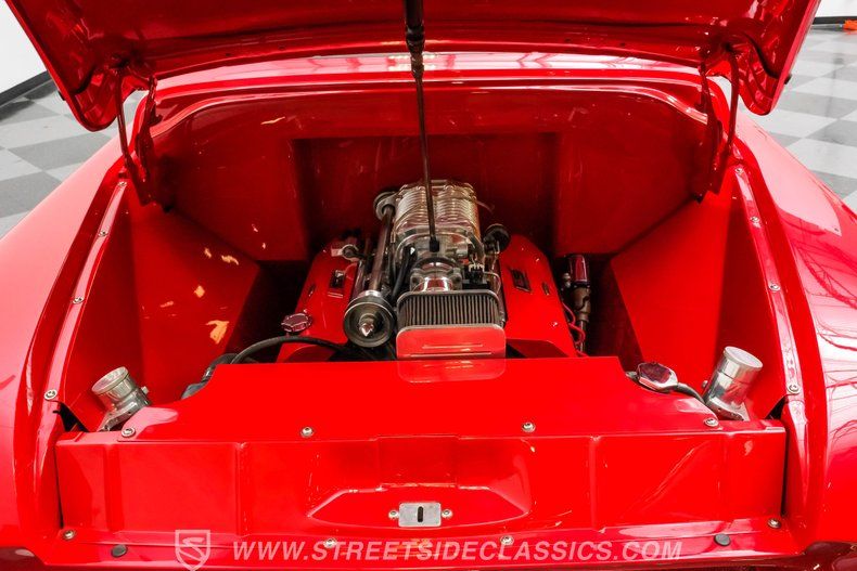 Under the hood, power meets refinement with a supercharged 5.7-liter LS1 V8 engine, delivering exhilarating performance without sacrificing smoothness. The Magnuson supercharger enhances power output, while the EFI system ensures precise fuel management. Paired with a Bowler's Performance 700R4 four-speed automatic transmission, this roadster offers seamless shifting and responsive acceleration. The drivetrain is complemented by a Speedway Engineering Super Max quick-change rear axle, tubular A-arms with airbags, and a custom 4-link suspension with air shocks, all contributing to a superior driving experience that balances power and control.