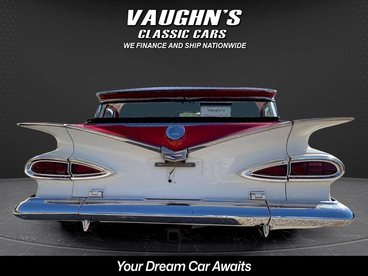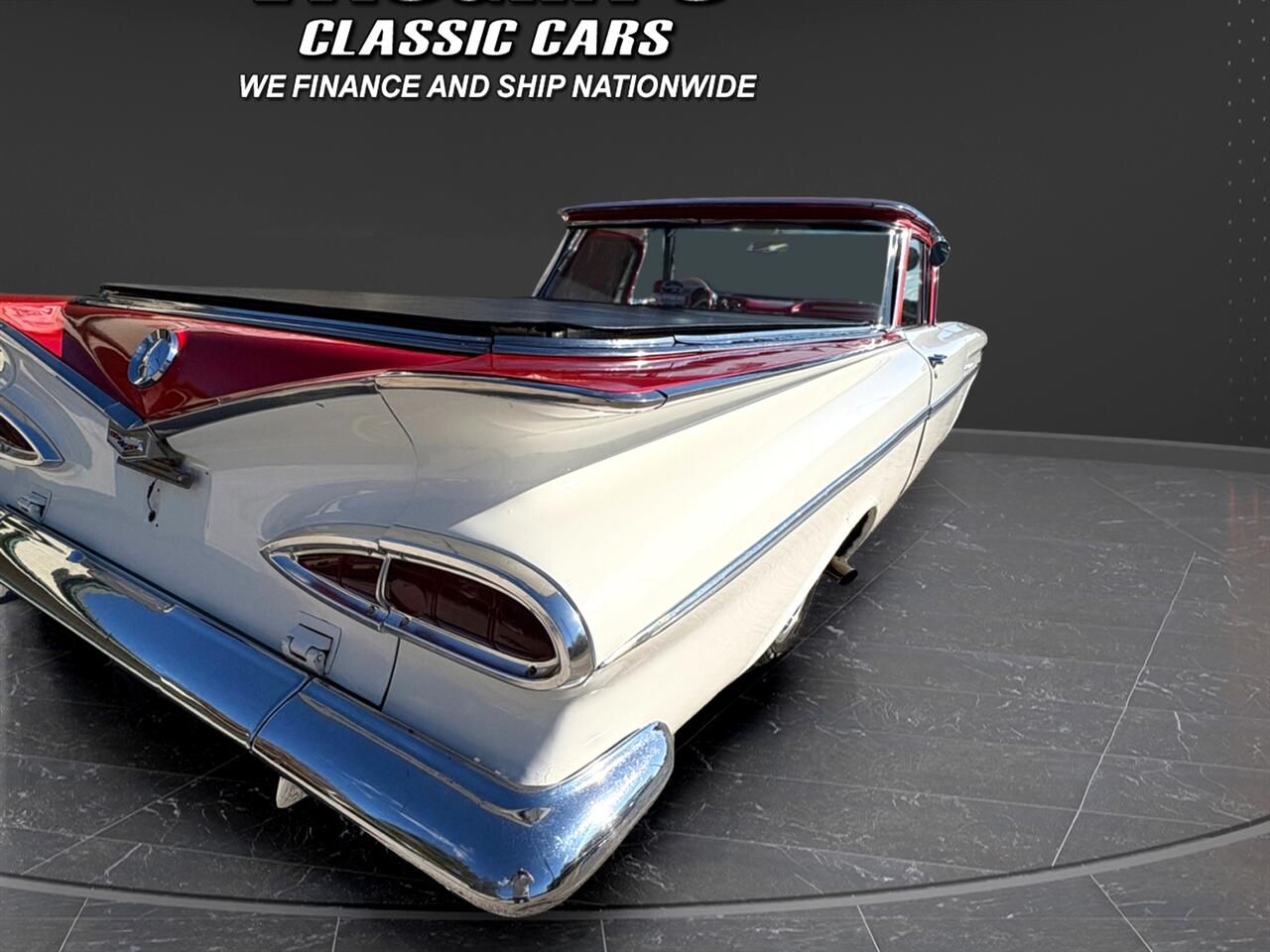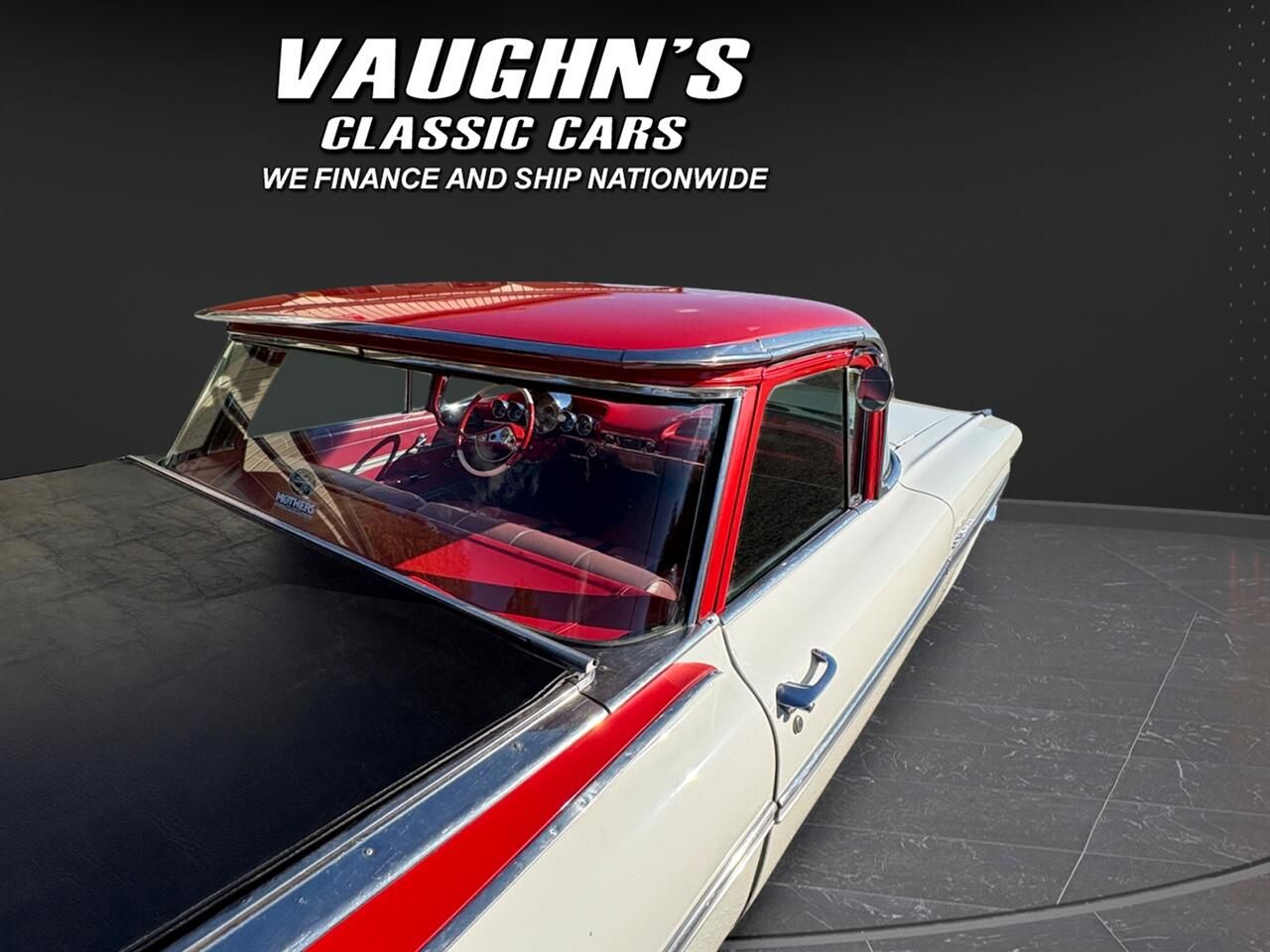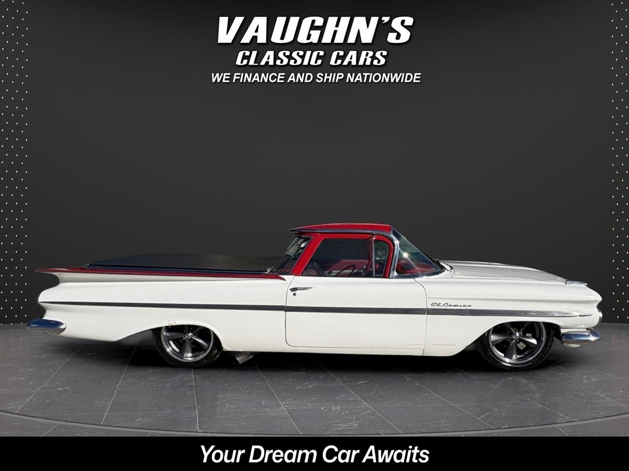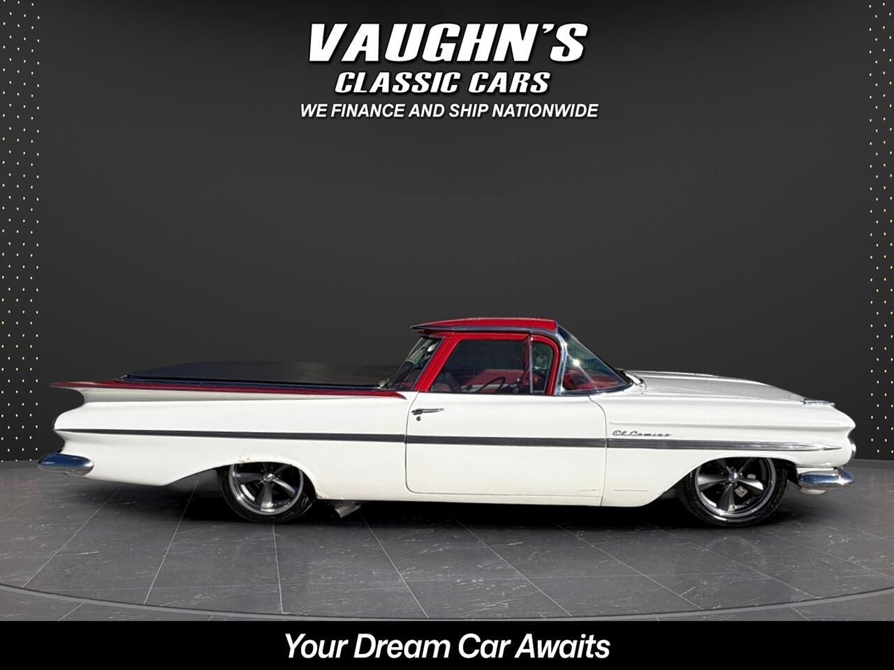 Take a look at this rare and custom 1959 Chevy El Camino street machine! The vehicle features and built 454 V8 with performance cam, headers, awesome sounding dual side exit Magnaflow exhaust, 700R4 4 speed overdrive transmission, 3:08 rear end, custom 4 corner adjustable air ride suspension with dual compressors, Boyds wheels with new tires, full 1959 Impala interior, perfect dash with chrome instrument pods and new Dakota Digital analog gauges, Retro Sound stereo, Ididit tilt column with painted steering wheel, power steering and power brakes, natural oak wood bed. The truck does have some spots in the body that will need repaired bust is solid underneath and it runs very strong and drives amazing! Financing and shipping offered. Call us at 618 336 5210 to discuss a deal. Visit Vaughns Classic Cars online at vaughnsclassiccars.com to see more pictures of this vehicle or call us at 618-336-5210 today to schedule your test drive.