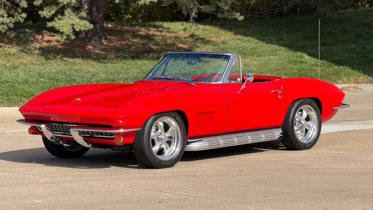 KC Classic Auto is proud to present this GORGEOUS 1967 Corvette convertible, A.K.A. Manuela!Recently restored and refinished in STUNNING Viper Red with a White convertible top and Black interior. The paint is a little over a year old and in excellent condition. The convertible top is brand new, and the interior is in excellent condition.Powered by its original numbers matching 327ci/300hp V8 mated to its original numbers matching Muncie 4-speed manual transmission. It also has its original Positraction rear end with 3.36 gears.Brand new side exit exhaust and 17 polished American Racing Torq Thrust wheels with BF Goodrich tires. Visit KC Classic Auto online at kcclassicauto.com to see more pictures of this vehicle or call us at 913-888-1234.