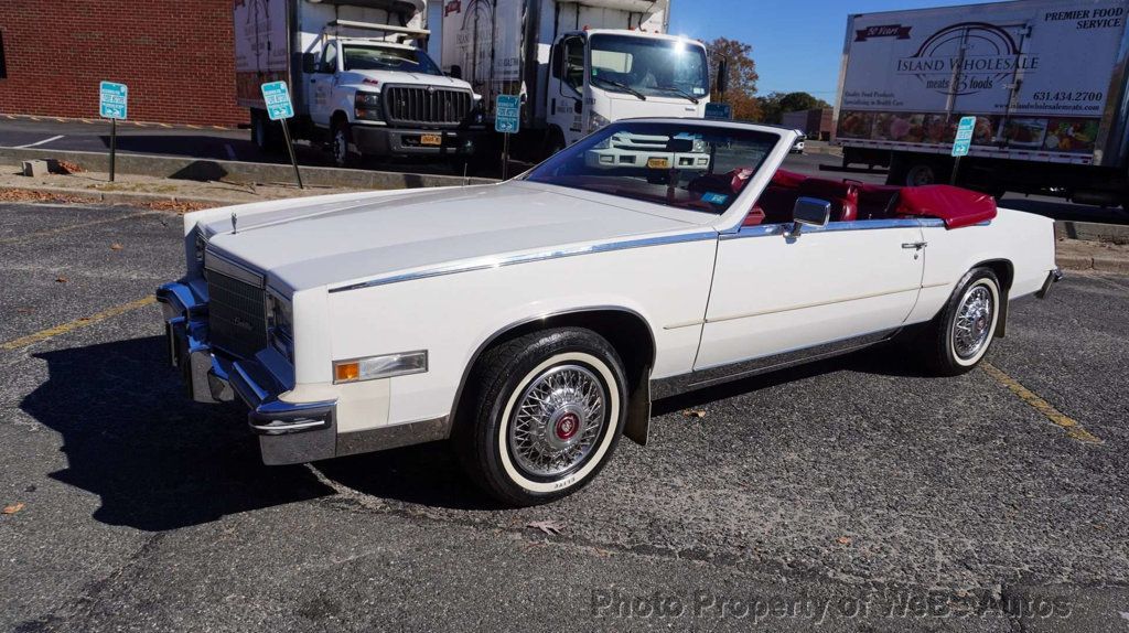 1984 Cadillac Eldorado Biarritz Convertible For Sale Beautiful Inside & Out With Only 46,009 Original Miles 4100 V8 Engine Automatic Transmission What A Beautiful Car! This Is One Of Only 3,300 Eldorado Biarritz Convertibles Produced In 1984 Making This A Rare Car When Compared To The 74500 Non-Biarritz Eldorado's Of That Year. The Car Has Just 46k Miles And Has Been Garage Kept Throughout Its Life. The Engine Runs And Drives Beautifully. The Idle Is Steady And The Pedal Is Responsive. It Starts Immediately And Stops As Designed. This Is A No-issue Car That Needs Nothing. Everything Works Perfectly Except The Power Antenna. It Stops From Time to Time But Does Go Down All The Way. The Long List Of Options Included: Auto Headlight Dimmer Climate Control Air Conditioning Eight-Way Power Seats Dual Power Mirrors Power Windows, Power Steering, Power Brakes Power Top With Boot Power Trunk Release Digital Information Center Cruise Control AM/FM Stereo Tilt And Telescopic Steering Wheel The Beautiful Burgundy Tuft Leather Interior Seating Is Basically Brand New. There Are No Cracks Or Tears To The Seats Or The Dash. The Top Is Also In Excellent Condition And Works Perfectly. The 255/70/R15 Elite Whitewall Tires Have 80% Tread- Life Remaining And The Brakes Are Close To New And Stop As They Should With No Pulling Or Strange Noises. If We Could Mention One Small Negative With This Car! The Bumper Spacers Are Plastic And Have Faded A Bit To An Off-white Color. This Is Typical On These Cars. Located In Farmingdale, NY 11735 Take A L@@K At The Video On YouTube: https://youtu.be/bkUH769ItPU WeBe Autos Specializes in Marketing and Advertising Muscle, Classic, Vintage and Specialty Cars. We offer Professional Photography, HD Movies, and Staging that Sells Cars. Let us showcase and sell your specialty car. Please visit our website for more details. Keep in Touch, Michael Runnalls Specialty Car Marketing & Media WeBe Autos Ltd. Long Island, NY 11780 Michael@WeBeAutos.com www.WeBeAutos.com (O)631-339-0399 (C)516-729-2003 Skype: webeautos (F)631-389-2605 - - Premium Sound System, Leather Interior Surface - Contact Michael Runnalls at 631-339-0399 or Michael@WeBeAutos.com for more information. -