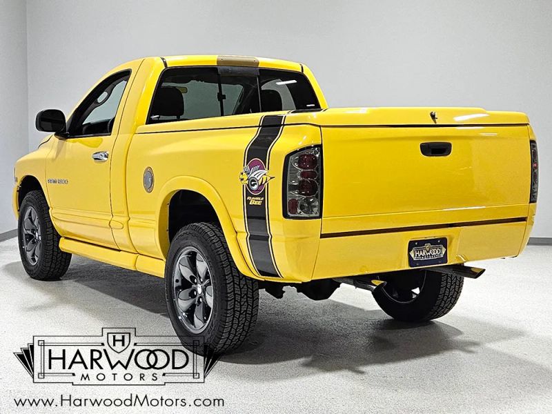 Dodge was all about performance in the early 2000s with the resurgence of the HEMI V8, and sticking it in a short bed pickup seemed like a no-brainer. Reaching back into their history, they put a twist on the Super Bee name and came up with "Rumble Bee" for the Ram pickup. Only built for two years, the limited edition Rumble Bee featured Solar Yellow paint, custom body cladding, and a special bumble bee stripe around the tail that was definitely the 1960s all over again. With special 20-inch wheels and a few other details, the Rumble Bee stood out in a crowded field of also-ran pickups. This particular Rumble Bee is number #2354 out of 9258 built in its limited 2-year production run. Its finished in desirable Solar Yellow and is the rather unusual 4x4 version, of which only 1572 were built. It remains in good overall condition for being 20 years old and still makes a statement when it rolls into a show. The paint is mostly original, although the bed sides have been repainted (the original decals were carefully masked and then covered in clear). Other modifications include a chrome grille up front, aftermarket headlights and taillights, and a custom rear roll pan. The bodywork is quite clean and it does present rather well in a sea of black, white, and silver late-model pickups.