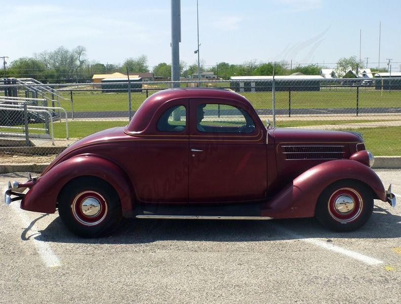 The Model 48 was put out by Ford in 1935 as a replacement for the popular V8 powered Model 40a. These received a large redesign and would continue to be refreshed annually until 1941. The combination of price, practicality, and looks set Ford far ahead Chevrolet for the top sales in their first year. Ford definitely ruled this decade, even today, as the Fords of the 30's are a go to for street rodding over other manufacturers. This nice Model 68 coupe is a 5 window version and is all factory steel painted in a Dark Red. Nice Gold pinstriping wraps the entire car accenting the bodylines nicely. It wears its original front/rear bumpers which are nicely chromed. It has a lot of the stock style trim as well with the V8 on the nose. It rides on matching steel wheels with beauty rings, Ford hubcaps and new Hankook tires.