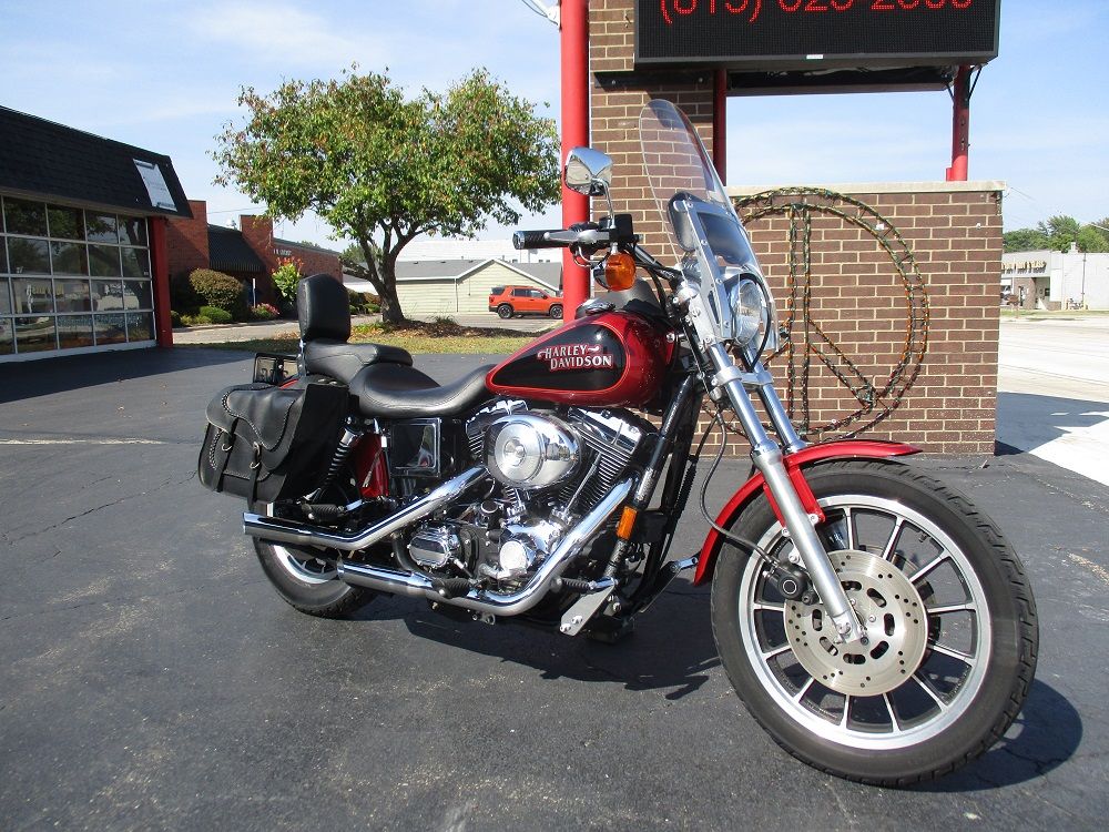 The Harley-Davidson FXS Low Rider was a classic American cruiser motorcycle that debuted in 1977. It was part of H-D’s Dyna family and was known for its distinctive styling and powerful performance. In 1993 Harley introduced the FXDL Dyna Low rider which continued through 2009. In 1999 The displacement was increased to 88” delivering more power and torque than the previous model. The bike still remained essentially unchanged in the aesthetic department, with a raked-out fork, a round headlight, a teardrop-shaped fuel tank, a one-piece dual seat with a low riding position and a chrome performance exhaust with a deep chopper note. Its suspension was fitted on a tubular steel frame and included a 39 mm telescopic fork on the front and dual side-mounted shock absorbers on the rear, offering excellent suspension performance and handling. The front end is equipped with dual disc brakes and another on the rear delivering excellent stopping power. This particular example was optioned in a gorgeous two-tone Laser Red and Vivid Black that look great together. It has been nicely upgraded with a passenger backrest, a windshield, a large windshield pouch, leather saddle bags and leather grips. Within the last 2,000 miles it received new tires, brakes and a battery. Within the last 200 miles it received new fluids and filters. The bike is very original and in amazing shape for a bike of its age. It currently has 25,345 miles and everything works as it should. Based on the current JD Power values we would appraise this bike for $8,545. We have priced it to sell quickly so don’t wait until it’s too late to contact us!