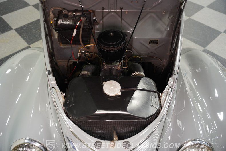 Under the hood, this Ford Tudor houses a 221 cubic inch flathead V8 engine, paired with a three-speed manual transmission operated from the floor. The manual steering and brakes provide a raw, engaging connection to the road, reminiscent of how driving felt nearly a century ago. Equipped with bias ply tires and factory-style suspension, this car delivers a driving experience that is both authentic and enjoyable. The drivetrain and mechanical components have been well maintained, ensuring smooth starts, steady acceleration, and responsive handling.