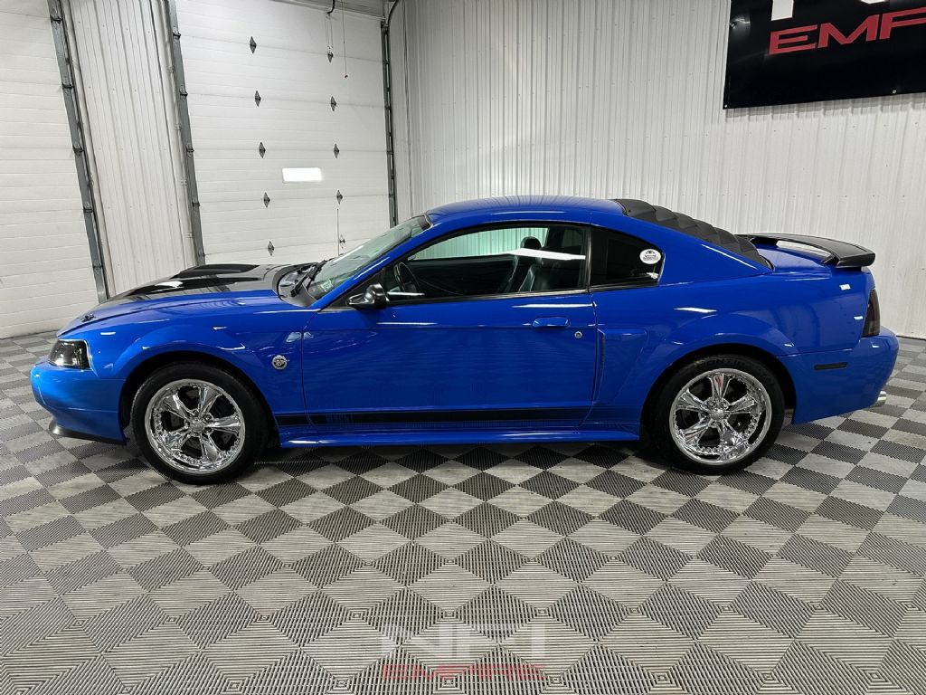 This 2004 Ford Mustang Mach 1 is a low-mileage, well-kept example of Ford's limited-production performance model. It shows only 33,000 original miles and remains meticulously clean inside, outside, and even underneath. Finished in Azure Blue - a color offered exclusively on the Mach 1 - the car stands out instantly, further distinguished by smoked headlights and smoked taillights.