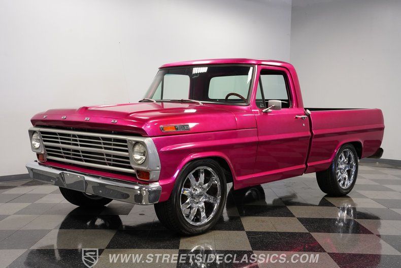 If you like to stand out and surprise people with something different at car shows and cruises, this 1967 Ford F-100 Restomod short bed is the way to go. This beautiful piece of art has a Hot Raspberry Pink paint job that looks phenomenal with the lowered suspension on the 20-inch chrome rims. And while being custom, it still holds onto its 1967 F-100 classic good looks. It had a frame-off restoration with new fenders, floors, glass, bumpers, and way too many more replacement pieces to list. This is a really cool truck that would make for a lot of fun to drive.