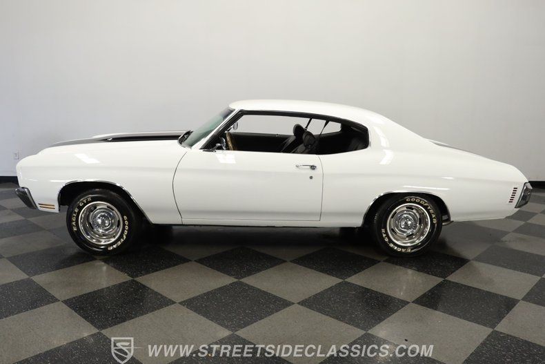 When it comes to the Golden Age of muscle cars, there will never be a unanimous agreement on which car was the king of the era. But, at least in the GM world, many enthusiasts will name the mighty Chevy Chevelle SS as their choice for the ultimate factory hot rod. That is why this 1970 Chevrolet Chevelle SS Tribute exists, and why we are bringing it to you today. Dual full-length black racing stripes set against its brilliant white exterior announce to the world that this car is serious about performance.