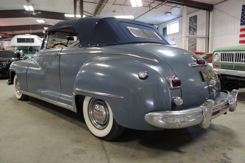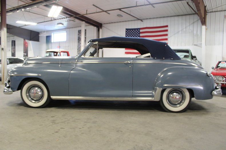 Introduced in 1946, The D24 was the top trim level in the Dodge range of cars, bigger than Plymouths counterparts. All models were powered by the 230 cubic inch six-cylinder engine with a 3-speed manual, while the "Fluid Drive" was an option which provided a smoother "no metal-to-metal contact between the power source and drive. This particular really cool example still retains its original paint with excellent patina with fading and dulling in spots. This car is largely original throughout with the exception of a newer top. The top is hydraulically powered and the top does go up and down with some help. This D24 starts up, idles and goes through the gears as it should and goes down the road as it should. The lights and gauges work, the brakes are decent and is all-around a really decent post-war convertible classic. We welcome any questions or inspections here in our Traverse City location.
