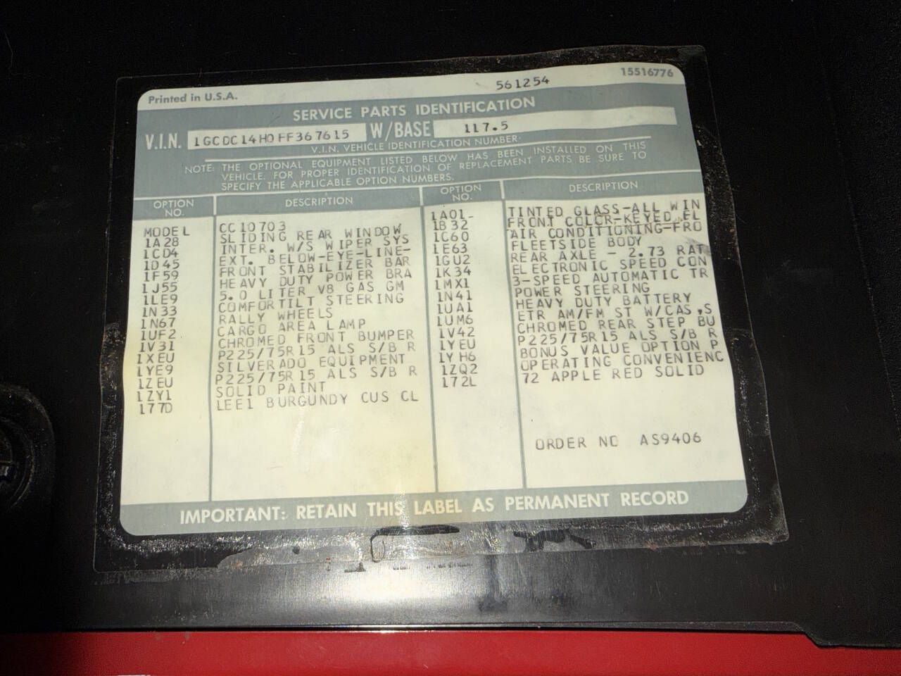 NEW ARRIVAL!!!! 1985 Chevy Silverado C10 SHORT BOX" Classic, Clean, and Ready to Cruise 1985 Chevrolet Silverado C10, finished in Apple Red over a Burgundy interior"a striking and period-correct color combo that turns heads everywhere it goes. Powered by a smooth-running 305ci V8 paired with a 3-speed automatic transmission, this truck delivers classic Chevy torque with effortless drivability. It features power windows, power locks, air conditioning, and cruise control, making it one of the more comfortably equipped C10s of its era. Additional highlights include: - Apple Red exterior ( Code 72 ) - Burgundy interior with clean upholstery and trim - Chrome front and rear bumpers - Factory-style Steel Rally wheels (if you want to specify, I can add details) - Strong-running 305 V8 - 3-speed automatic transmission - Power accessories (windows/locks) - A/C - Cruise control The truck runs and drives great, with solid mechanicals and classic square-body styling. Whether youre looking to enjoy it as-is, add to a collection, this C10 presents an excellent example of an increasingly desirable pickup. WE OFFER COMPETETIVE FINANCING AND NATIONWIDE SHIPPING!!!