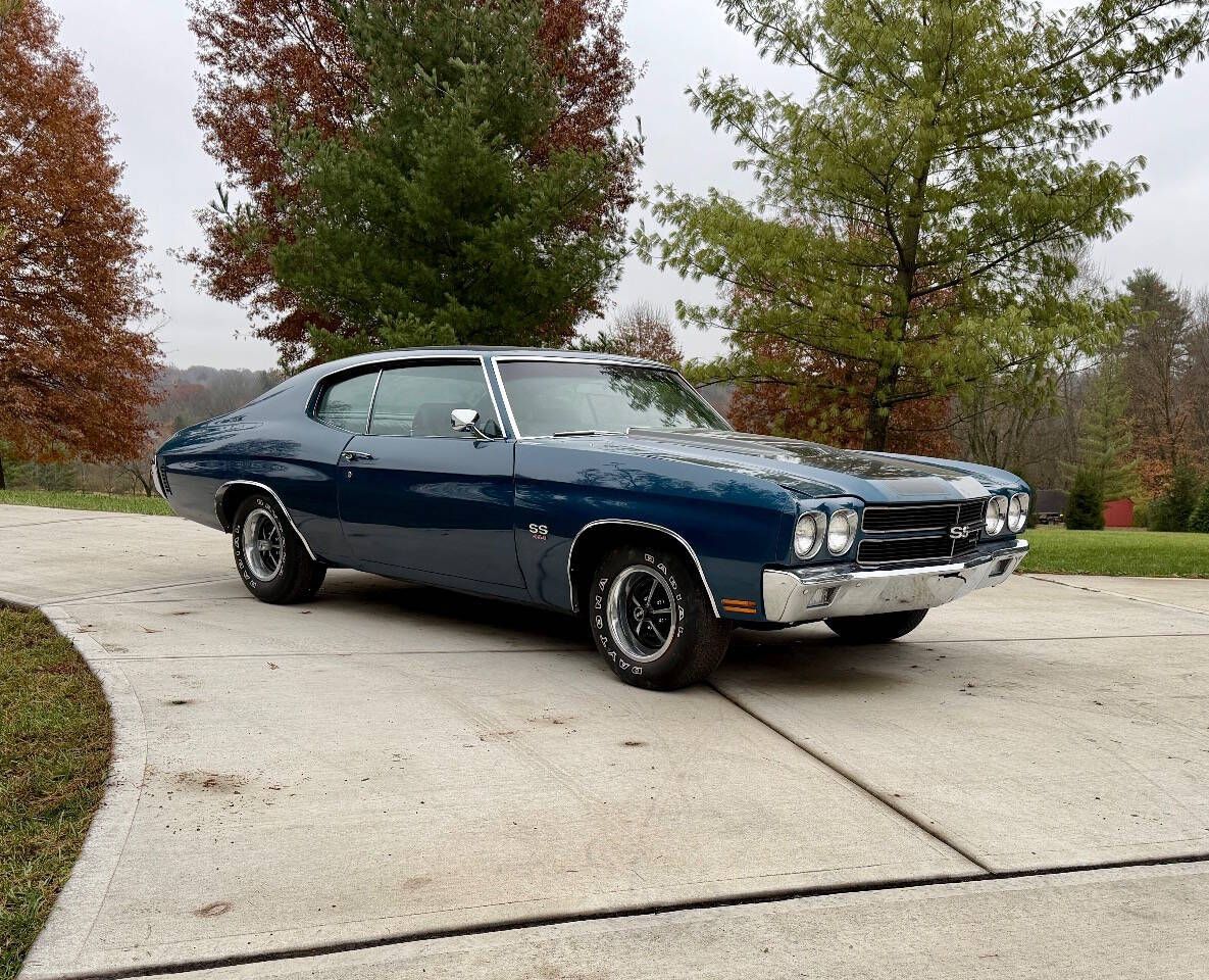 SUPER SHARP 1970 CHEVELLE SS 454 LS5 4SPD 12 BOLT F41 FACTORY AC PS PDB TACH & GAUGES STRAIGHT BODY BEAUTIFUL HIGH QUALITY FACTORY CODE 28 FATHOM BLUE PAINT WITH EXCELLENT BLACK BUCKETS & CONSOLE INTERIOR PLEASURE TO CRUISEDRIVES VERY SMOOTH TIGHT AND STRONG! VERY DESIRABLE FACTORY FATHOM BLUE WITH BLACK BUCKETS CONSOLE INTERIOR CAR STRAIGHT AND SOLID METALNICE GAPS AND FITDOORS, HOOD AND TRUNK OPEN CLOSE GREAT CLEAN AND SOLID AND DRY METAL FLOORS AND FRAME NICE SOLID TRUNKDETAILED WITH SPLATTER PAINT MUNCIE M21 4SPD TRANSMISSION HURST SHIFTER SMOOTH RESPONSIVE AND STRONG 454 ENGINE WITH ABOUT 360HP NICELY DETAILED CLEAN ENGINE AND ENGINE BAY 12 BOLT POSI REAREND WITH 3.31 GEARS AND F41 SUSPENSION GREAT SETUP WITH ALL THE DESIRABLE OPTIONS AND FEATURES: SMOOTH RESPONSIVE AND STRONG 454 MOTOR FACTORY AC CAR BUT AC NOT CURRENTLY FUNCTIONAL POWER FRONT DISC BRAKES POWER STEERING FACTORY TACH AND GAUGES DASH EXCELLENT BLACK BUCKET SEAT AND CONSOLE INTERIOR 4SPD TRANSMISSION 12 BOLT REAREND F41 SUSPENSION LIKE NEW BUMPERS AND TRIM AND EMBLEMS LIKE NEW GRILL CORRCT 14 SS WHEELS AND WHITE LETTERED TIRES PERFECT LOOK AND STANCE NEW FULL DUAL FLOWMASTER EXHAUST ALL WAY BACK WITH CORRECT CHROME TIPS ..SOUNDS GREAT! BEAUTIFUL MILE DEEP FATHOM BLUE PAINT .BUFFED SMOOTHDEEP COLOR AND SHINEPAINT LOOKS EXCELLENT DESIRABLE GORGEOUS FACTORY COLOR FOR A 70 CHEVELLE.FATHOM BLUE! FOR MORE PICTURES OF THIS CAR PLEASE EMAILDAN400GTO@HOTMAIL.COM OR CALLL513-615-5755 FOR WALK AROUND VIDEO OF THE CAR RUNNING PLEASE EMAILDAN400GTO@HOTMAIL.COM OR CALL513-615-5755 EASY FINANCING IF NEEDED THRU JJ BEST WWW.JJBEST.COM FOR FINANCING CALL CHRIS @ 508-415-1035 FOR QUESTIONS ON CAR PLEASE EMAIL OR CALL 513-615-5755 WITH ANY QUESTIONS AND/OR OFFERS. THANKS DESIRABLE GORGEOUS FACTORY COLOR FOR A 70 CHEVELLE.FATHOM BLUE! FOR MORE PICTURES OF THIS CAR PLEASE EMAILDAN400GTO@HOTMAIL.COM OR CALLL513-615-5755 FOR WALK AROUND VIDEO OF THIS CAR RUNNING PLEASE EMAILDAN400GTO@HOTMAIL.COM OR CALLL513-615-5755 EASY FINANCING IF NEEDED THRU JJ BEST WWW.JJBEST.COM FOR FINANCING CALL CHRIS @ 508-415-1035 PLEASE EMAIL OR CALL 513-615-5755 WITH ANY QUESTIONS IF YOU NEED SHIPPING I HAVE A SHIPPING SOURCE THAT HAS VERY REASONABLE RATES AND SHIPS IN A TIMELY MANNER. POSSIBLE CLASSIC CAR LOAN OPTIONS: WWW.LIGHTSTREAM.COM