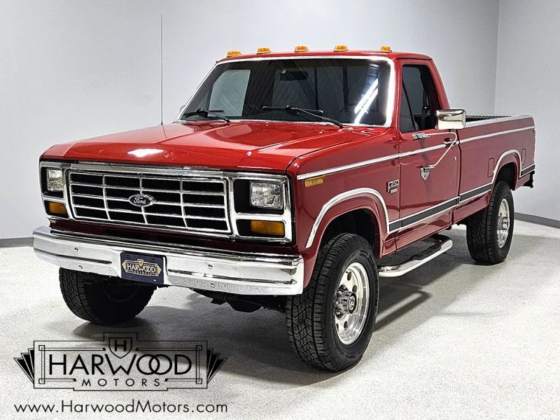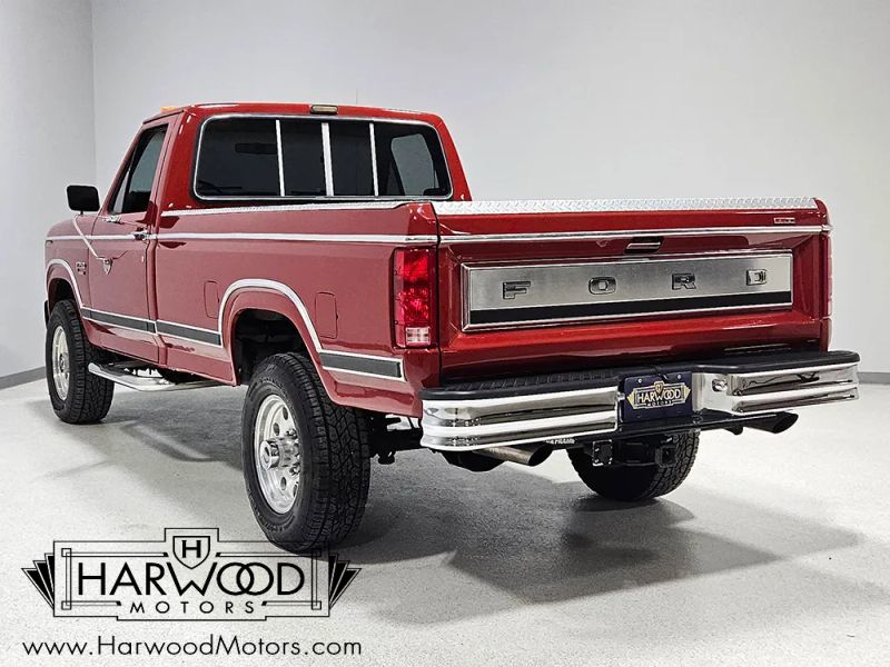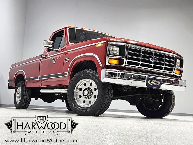 Big Ford trucks are red hot right now, so what could be more appropriate than this bright red 1984 Ford F250 4x4? Coming from a home where it was lovingly restored, it is one of the best of its kind that weve seen. It benefits from a thorough restoration that stripped it down to just a chassis and cab and rebuilt from there. The bright red paint is the trucks original color, and its a nice change from all the beige and brown examples from this period-it looks awesome. Finish quality is surely better than when Ford was doing it in the 80s and the doors still close with that distinctive sound. The 8-foot bed was removed and repainted, then finished with a spray-on bedliner so its ready to work if thats something you decide to do. Much of the chrome is original and in excellent condition, although a few items are new, including the NOS tailgate insert. Theres a new bumper out back, chrome tubular step plates to make getting in a little easier, and big side mirrors in case you want to tow a trailer with your new F250. We also like the cab lights, which give it a big rig vibe, and all the stainless trim has been buffed so it looks as good as new. From every angle, this truck looks fantastic and thats not an illusion.