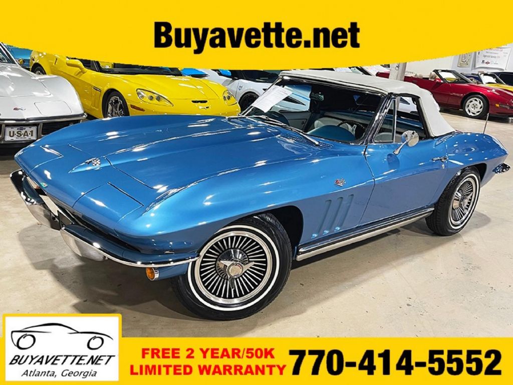 FREE SHIPPING! Were currently offering a $500 discount when shipping this vehicle. Please note that this promotion cannot be combined with any other offers or discounts. SEE MORE PHOTOS OF THIS CORVETTE, ALONG WITH MANY OTHERS, AT WWW.BUYAVETTE.NET! OUR VEHICLES RECEIVE A DETAILED INSPECTION, AND MOST COME WITH A LIMITED WARRANTY AT NO EXTRA COST. Code correct Nassau Blue exterior, Blue interior with White vinyl seats and door panels, White convertible top. Numbers matching 350hp 327ci L79 engine, 4 speed manual transmission. Features include power steering, power brakes, power windows, power antenna, knockoff style wheels, telescopic steering wheel, AM/FM radio. Originally assembled on November 30, 1964, this 1965 Corvette L79 Convertible is in good condition, and features some desirable options as well. Odometer currently reads 40,572 miles; however, we are unable to document actual miles on this car, so it will be sold as MILEAGE EXEMPT. This car's paint is in good condition, with a good shine. Convertible top is vg, and chrome bumpers show a vg finish as well. Exterior door handles are vg, weatherstripping is vg-exc, and knockoff style wheels are vg with vg spinners. Radial whitewall tires show an average of 9/32nds tread depth remaining. The interior of this 1965 Corvette L79 Convertible shows good condition seats, steering wheel, and carpet, vg-exc glovebox lid, and vg door panels, dash pods, GM seatbelts, and center console. Correct appearing AM/FM radio is in place. The numbers matching L79 engine in this car shows original casting date November 2, 1964, and final assembly date November 9, 1964. Correct air cleaner, carburetor, intake manifold, valve covers, ignition shielding, exhaust manifolds, radiator hoses, and hose clamps are all in place, and the frame is solid and rust-free. Call us today to bring home this L79 droptop! FREE 2 YEAR/50K ADDITIONAL MILE LIMITED WARRANTY, GOOD AT ANY REPAIR FACILITY NATIONWIDE!! Our Price: $84,999 or 20% down with payments as low as $1,209/month W.A.C.