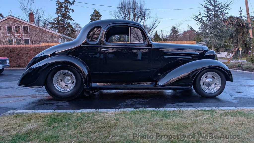 1936 Chevrolet Master Deluxe 5 Window Business Coupe Street Rod For Sale All Steel Car With Professionally Metal Work Professionally Built Street Rod Built From an Original Rust Free All Steel Texas Car Very Special Car Built With Incredible Attention to Detail and Custom Touches Like New With Only 1,600 Miles on the Build This Work of Art Drives Like a New Car Vintage Air Heat And Air Conditioning ZZ350 With Aluminum Heads, Street And Performance Complete Billet Aluminum Engine Components Shorty Headers Leading to Custom Flow Master Exhaust With Side Tips GM High-Rise Manifold Brand New Holly Demon Carburetor Billet Valve Covers Electronic Ignition Brass Walker Radiator Electric Fan Keeps It Cool Turbo 350 Automatic Transmission With TCI Torque Converter Lighted B&M Quick Silver Ratchet Shifter Wilwood Power 4 Wheel Disc Brakes Custom Pro Street 1936 Chevrolet Frame ~ A $4k Upgrade! Very Special, Custom Ordered Centerline Convo-Pro Wheels With a 15 Inch Deep Dish Out Back Mickey Thompson Sportsman Tires ~ Nice Fat, 31x18.5 Rear Tires SRS Independent Front Suspension With Polished SS Control Arms, Coil-Overs And Power Rack And Pinion Steering SRS Rear Suspension With Ford 9 3:73 Posi Rear with Ladder Bar Setup Narrowed, 31 Spline Axles, 4 Link With Coil-Overs Lightened Up With Custom Frame ~ All Boxed and Welded Beautiful Panel Fitment ~ Doors Close Beautifully All Stainless Steel Fasteners Inside and Out Gorgeous Black Paint You Can See Your Reflexion In Beautiful Art Deco Hood Ornament Factory Smoked Glass ~ Windows Roll Up and Down Beautifully Front Turn Signals Nicely Frenched-In Custom Tail Lights and Third Brake Light Black Full Leather Interior ~ Even The Headliner and Door Panels All Dynamat Lined ~ Nice Mellow Sound Inside Custom Billet Bowtie Dash Is Gorgeous Like Jewelry Beautiful Black Vintage VDO Gauges Custom Billet Aluminum Steering Column Leather Wrapped Steering Wheel by Lecarra Custom Pedal Assembly Billet Door Handles Like New Seat Belts Still Have the Plastic on Them Original Dome Lamp Beautifully Polished Chrome Inner Window Trim No Back Seat ~ Feature of the Businessman Coupe Fully Finished Trunk and Lid Fuel Fills In The Trunk Gel Battery With Cut Off Switch Huge Stack of Receipts Included Incredibly Comfortable To Drive With No Squeaks or Rattles Starts Right Up and Sounds, Drives Amazing and Is Just Fantastic! For Sale By Owner Located In East Patchogue, NY 11772 Take A L@@K At The Video On YouTube: https://youtu.be/Na0GmNpb248 Follow This Link To Over 350 High Resolution Photos: https://photos.app.goo.gl/kMvV3vj85Dtg GwLs9 WeBe Autos Specializes in Marketing and Advertising Muscle, Classic, Vintage and Specialty Cars. We offer Professional Photography, HD Movies, and Staging that Sells Cars. Let us showcase and sell your specialty car. Please visit our website for more details. Keep in Touch, Michael Runnalls Specialty Car Marketing & Media WeBe Autos Ltd. Long Island, NY 11780 Michael@WeBeAutos.com www.WeBeAutos.com (O)631-339-0399 (C)516-729-2003 Skype: webeautos (F)631-389-2605 - - Premium Sound System, Full Leather Interior Surface - Contact Michael Runnalls at 631-339-0399 or Michael@WeBeAutos.com for more information. -