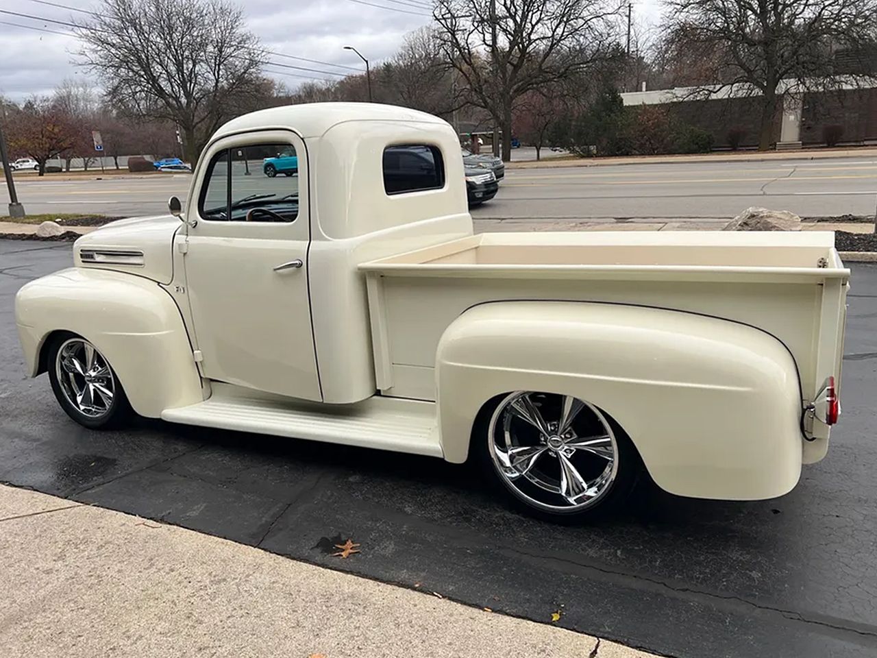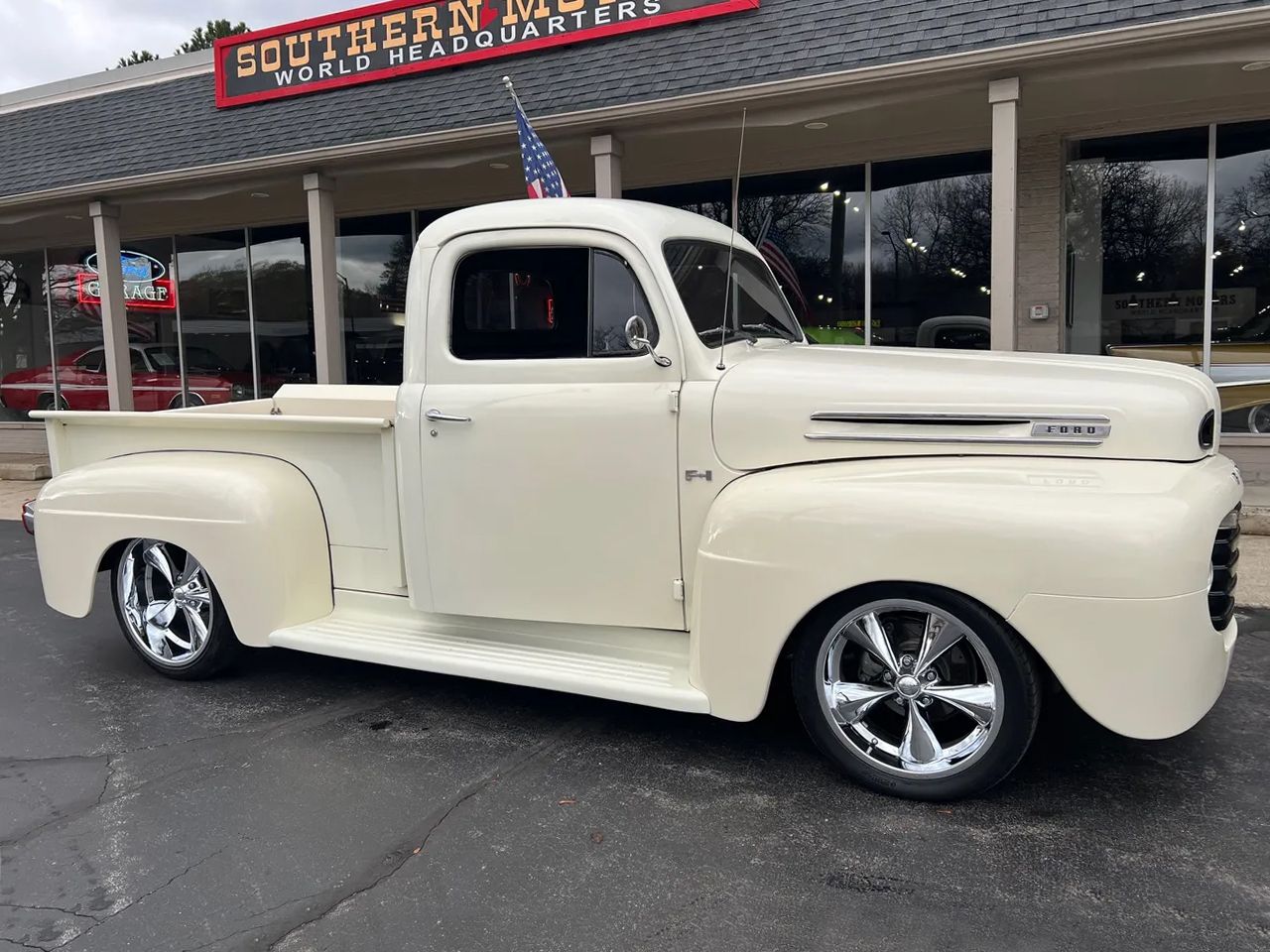 Clean Tennessee truck, Custom Built Street Rod, beautiful Classic white paint, custom grey leather interior, 350 ci engine, Edelbrock 4 bbl, polished aluminum intake, Comp camshaft, headers, MSD Street Fire ignition with Pro Billet distributor, finned aluminum air cleaner & valve covers, Camaro front sub-frame, power steering, power front disc brakes, air conditioning, aluminum radiator, 350 turbohydramatic transmission, custom stitched bench seat, chrome tilt column with Lecarra wheels, Dakota digital gauge cluster, custom sound system, power windows & locks, cruise control, Flowmaster dual exhaust, 10 bolt 3.23 rear axle, 245/45ZR20 rear tires, 245/40ZR18 fronts, 18 & 20” chrome Boyd wheels, custom fuel tank, custom oak bed, dual chrome mirrors, Ready to Cruise!