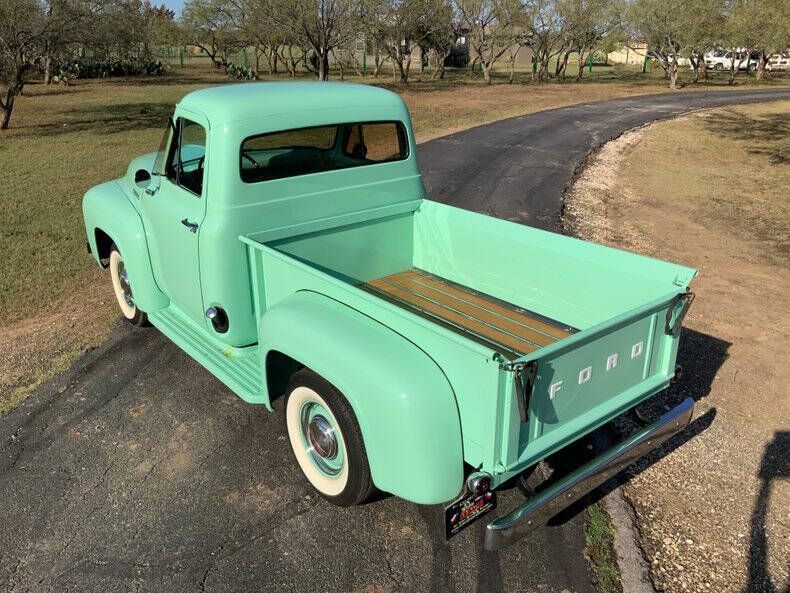 Since opening our doors in September 1999, Street Dreams Texas has spent 27 years connecting enthusiasts worldwide with classic cars and trucks. This beautifully preserved 1954 Ford F-100 is a standout example of post-war styling meeting early modern V8 performance. Ford continued breaking new ground in 1954 with the introduction of their Power King OHV V8-the first modern overhead valve V8 in the light-duty truck segment, beating Chevrolet's small block to market by a full year. This truck is powered by that very Power King V8, a one-year-only 239 cubic inch displacement that replaced the previous flathead engine. For extra reliability, we've added a new aluminum radiator while keeping the original for authenticity. The exterior shines in correct Sea Haze Green (code H), perfectly highlighting the truck's clean, classic lines. It's equipped with a 3-speed manual transmission on the column, a pristine bed featuring stainless steel and wood in excellent condition, and a clean, inviting interior. The truck rides on brand-new Coker Classic 235/75R15 radial tires with wide whitewalls, completing its timeless look. This F-100 is exceptionally well-sorted, looking, sounding, and driving like it should. Whether you're a collector or just love driving classic trucks, it's ready to be enjoyed and admired. For pricing, more photos, or worldwide delivery, contact Street Dreams Texas at 830-997-1950. We offer full-service support, including insurance and financing, to make classic truck ownership easy.