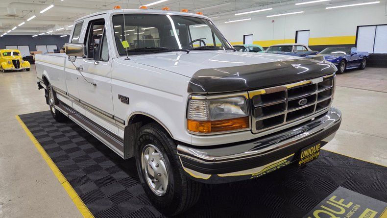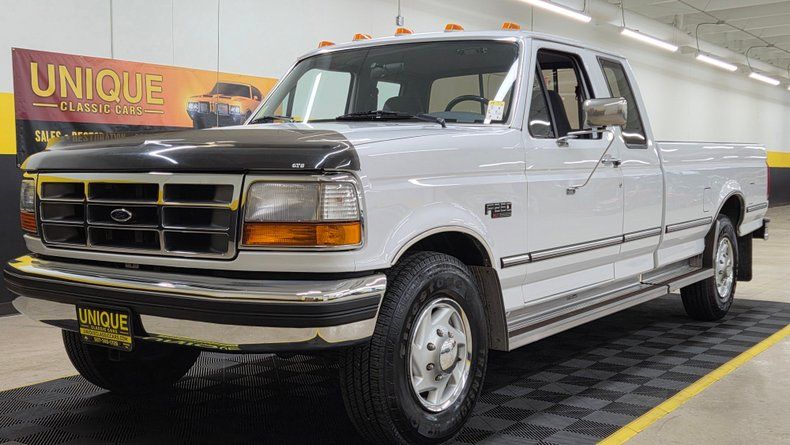 1995 Ford F250 XLT two-wheel-drive club cab truck. Powered by a 7.5L V8 gas engine paired with an automatic transmission featuring overdrive, a remarkably low odometer reading of 69,437 miles, underscoring its light use and excellent condition. The exterior is white and in great shape, complemented by Firestone radial tires dated 2023, with ample tire life. Clean, solid body featuring running boards and bug shields. Inside, the gray cloth split bench seats are in great condition, with power windows, locks, and seats, cruise, tilt, along with a functional stereo. The interior has clearly been well cared for, showing minimal wear on the dashboard, armrests, and seats, suggesting indoor storage and limited use. Mechanically, the truck has been recently serviced with Amsoil brand fluids in the engine transmission and rearend. A tune-up performed, and new air and fuel filters. Also equipped with dual fuel tanks. On the road, no surprises, the truck runs great and demonstrates smooth braking, responsive power steering, and a solid road feel.