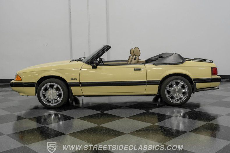 Few versions of Ford's pony car have influenced the modern muscle car scene quite like the latter half of its third generation. This 1989 Ford Mustang LX 5.0 Convertible comes decked out in a complete repaint of its factory-correct Mimosa Yellow, along with a new black vinyl power convertible top. With its sleek LX body style and practical rear luggage rack, this drop-top Five Oh is ready to ride as soon as you are.
