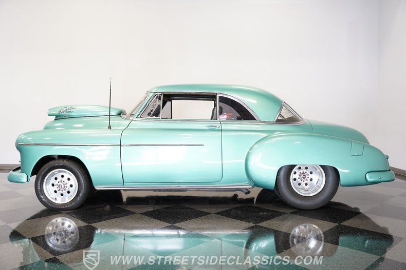 Some cars need no introduction. While it was originally designed as a family sedan, this 1950 Chevrolet Bel Air Pro Street is built to haul a lot more than groceries. The inaugural year for the Bel Air name, along with the two-door hardtop designation, the 1950 model already holds special significance, but with its full Green Metallic repaint, massive-scooped hood, and steamroller-sized Mickey Thompson rear tires, this race-ready coupe is truly one of a kind.