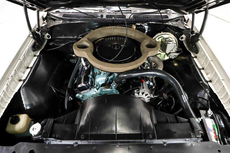 ENGINE COMPARTMENT: Restored to factory condition, clean and proper! It is a correct Ram Air III 400 making 366 HP! It has original heads, ram air exhaust manifolds, carb, chrome valve covers and the complete ram air system on top. It features power steering and power brakes with a cadmium plated booster. It is complete with GM hoses and clamps, spring clamp cables, heat riser tube, squirters are hooked up etc. The metal surfaces are painted smooth and neat.