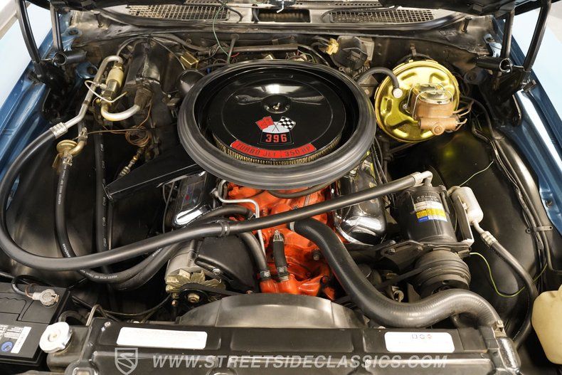 Under the cowl induction hood is a healthy L34 350 horsepower 396 big block engine paired with a TH400 automatic transmission that delivers power back to a 12-bolt posi rear end. The engine bay is stock in appearance, including colors, valve covers and even hoses and clamps. This Chevelle handles great thanks to optional power steering. The standard F41 Special Performance front and rear suspension includes power front disc brakes, high-rate springs and shocks, large diameter front sway bar and a rear sway bar with boxed rear lower control arms. Additionally, this Chevelle has been upgraded with tubular front control arms and rear trailing arms.