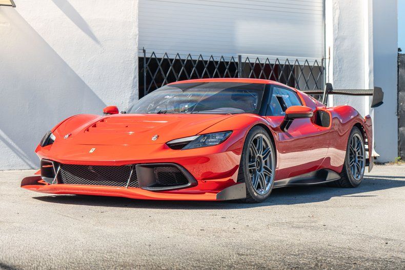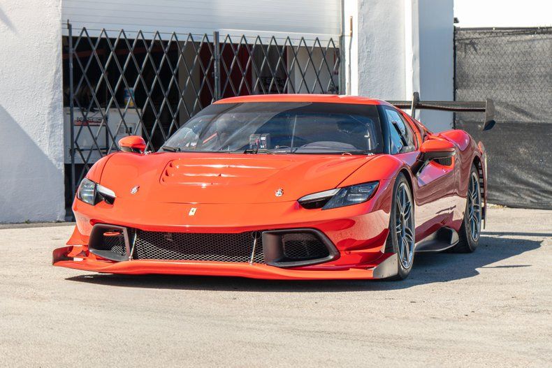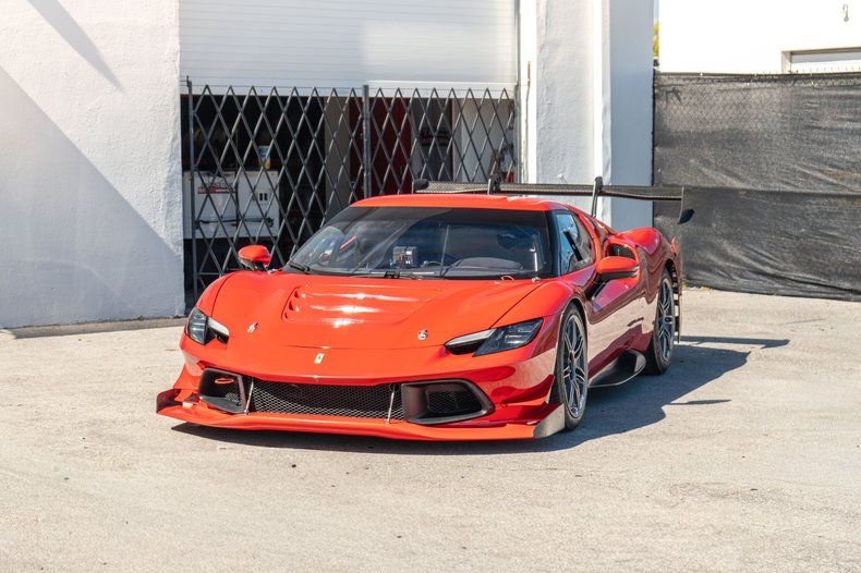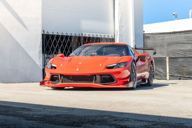 This 2024 Ferrari Challenge 296 was campaigned by Ferrari of Central New Jersey to six top-10 finishes in 10 starts with Osvaldo Gaio at the wheel through the 2025 season. Power is provided by a twin-turbocharged 2,992cc quad-cam V6 that drives the rear wheels without hybrid assistance through a seven-speed F1 dual-clutch transaxle and an electronic limited-slip differential. Finished in red, the car features a Challenge-specific aerodynamics package and rides on 19" Rotiform wheels coupled with Brembo CCR-M disc brakes and adjustable coilovers at all four corners. Inside, two Sabelt carbon-fiber racing seats are accompanied by a roll cage as well as air conditioning, a Racelogic video system, and a Motorola radio.