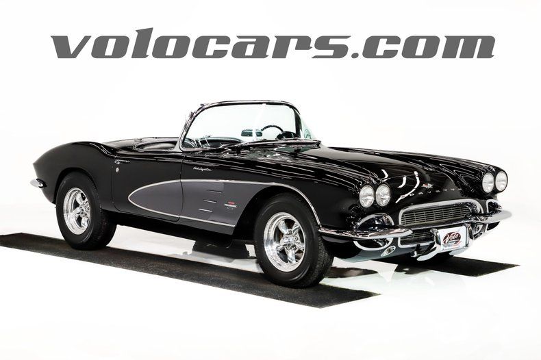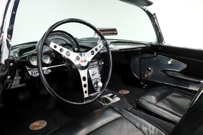 EXTERIOR: Here's a looker! A classic Corvette in tuxedo black with a silver cove is stunning. The body is in great shape and fits very nicely. The paint has a very glossy finish with just a few minor flaws. The chrome and trim looks like most of it was replaced or restored. The windshield and weatherstrips were replaced. This is a two top car! The black convertible is in very good shape. The hardtop was repainted, has excellent trim, weatherstrips, windows, and white headliner. It has a more aggressive look thanks to the polished 15 inch Torque Thrust wheels wearing some beefy radial tires.