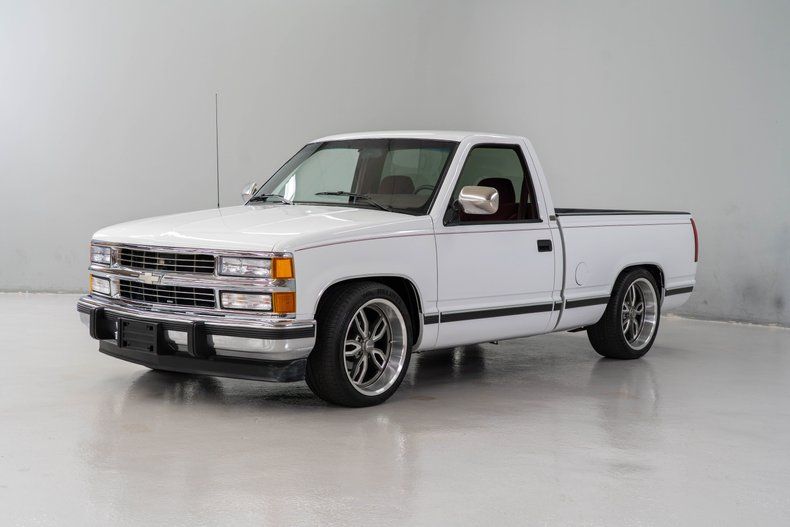 This 1993 Chevrolet Silverado 1/2-ton 4x2 short bed pickup is a very nice highly sought after ride. It was carefully restored in 2024 with cosmetic and performance upgrades. The exterior has a new 2-stage white finish, and the truck sits well on a custom suspension package. Accents include a front spoiler, rear roll pan, new trim and grille and a carefully sprayed bed liner. Ridler 20" chrome alloy wheels mount Delinte performance radials.