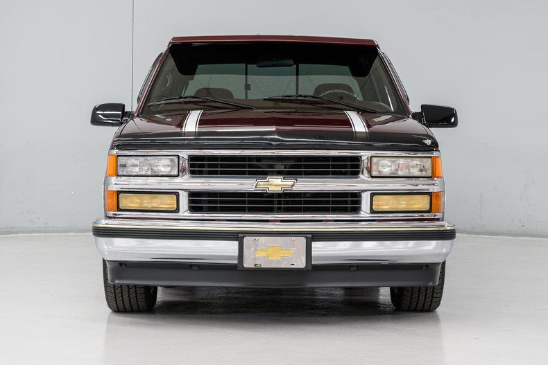 The original Burgundy cloth interior has been well maintained. The 60/40 front seat is power assisted, and carpeting, dash, door cards and headliner all look almost new. Convenience options include A/C, cruise control, power-tinted windows, full analog gauge cluster with tach, and dual air bags. The Silverado is also equipped with fold-down center console, tilt wheel, power locks, sliding rear glass and factory AM/FM/Cassette sound system. Access to the rear seating area is provided by a passenger-side 'suicide' door.