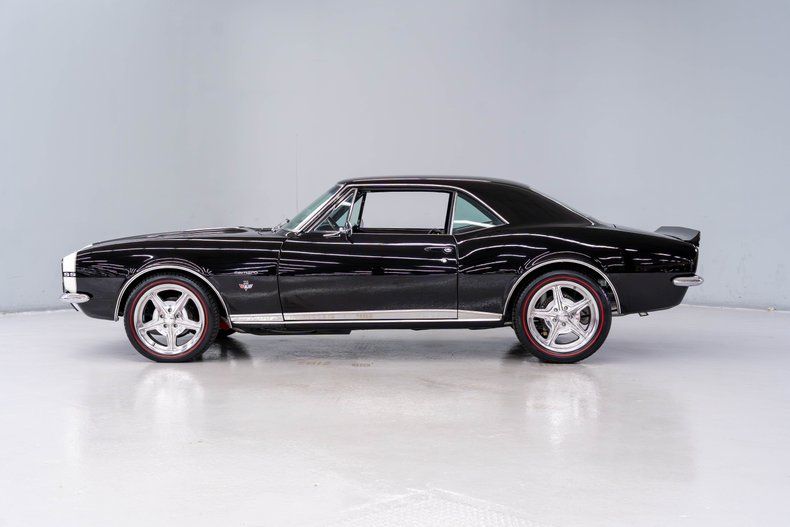 This fully restored in 2017, 1967 Camaro RS/SS coupe is a stunning example of this very special GM lore. Without question, it is one of the nicest Camaros we have had here at AutoBarn. The Camaro coupe left the factory with both the Rally Sport and Super Sport 350 option packages, and it appears that all the original major mechanical components are still there, except for the manual transmission. The body fit is exceptional and the fresh respray of Tuxedo Black is virtually flawless. The Rally Sport option adds hide-away headlights and extra chrome trim/molding. The Camaro is also embellished with the "Bumblebee" nose stripe (an option only on '67/'68 models). Upgraded wheels are 18" Billet Specialty Speedway alloys that mount Falken Z-rated redline radials. The Camaro's stance is classic '60s and it looks great from any angle " check the photos again.