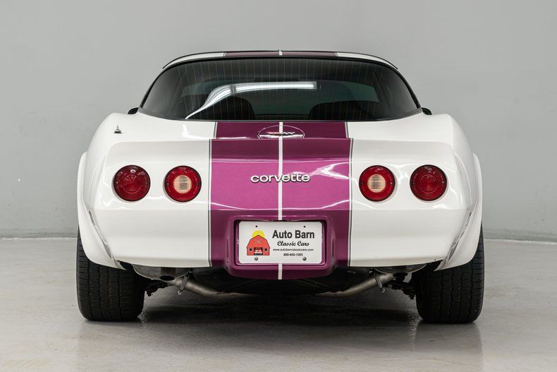 A stunning respray (2016) of Classic White, the original color, was professionally done by folks who understand Corvette restoration. The longitudinal Light Magenta stripe with pin stripping is a perfect accent on the C3.