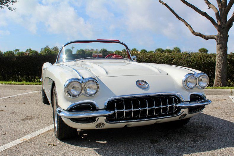 Offered for sale is a beautifully restored 1959 Chevrolet Corvette, blending iconic late-50s styling with dependable, modern performance upgrades. Finished in crisp white with silver coves over a striking red interior, this Corvette delivers both show-stopping looks and an exceptional driving experience.