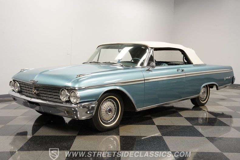 Riding on an independent front suspension and a solid-axle leaf spring setup in back, this 1962 Ford Fairlane 500 Galaxie 500 XL Sunliner Convertible sports 14-inch steel wheels with red, white, and blue center caps wrapped in a matching set of 215/75R-14 whitewall tires. The Ford Galaxie was produced for fifteen years over four generations, and with the first generation only lasting a single year, the second generation really set the tone for all the Galaxies to come. So, if you have been looking for a fun, classic drop-top, this Galaxie is out of this world. Don't wait, call today!