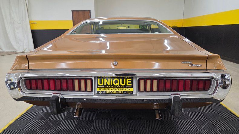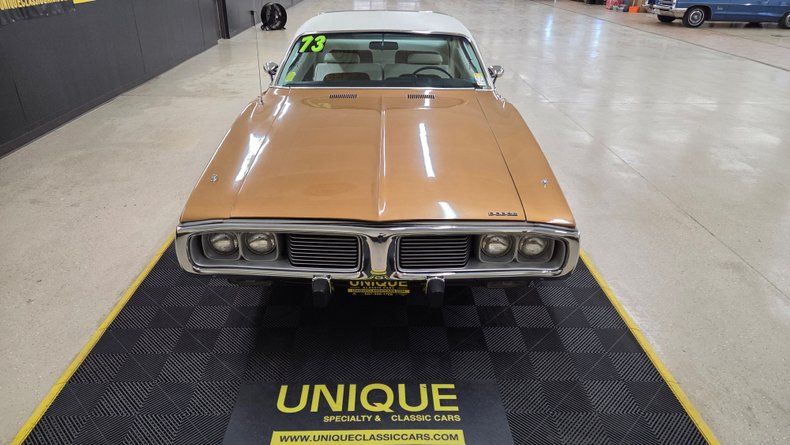1973 Dodge Charger in original Aztec gold with white vinyl canopy roof